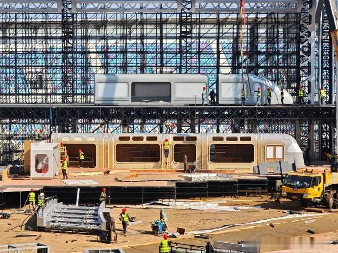 湖南卫视跨年舞台布局湖南跨年舞台置景高铁主题舞台超震撼!1:1 实体模型 + 3