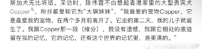 陈伟霆儿子在大铜去世第二天出生陈伟霆的狗去世第二天小孩出生生命的特殊缘分!陈伟霆谈爱犬离世次日得子,称与大铜的相处全是美满记忆。