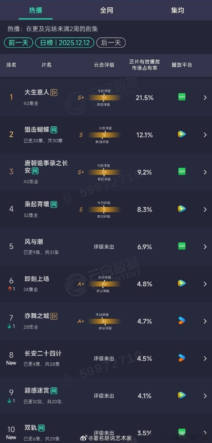 成毅长安二十四计4.5%虞书欣成毅新剧首日云合 双剧同档竞技!成毅《长安二十四计》4.5%(700w+)略胜,虞书欣《双轨》3.5%(500w+),题材差异化各有受众。