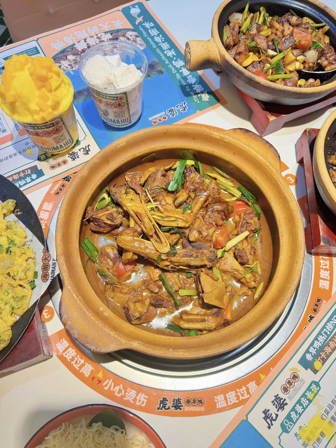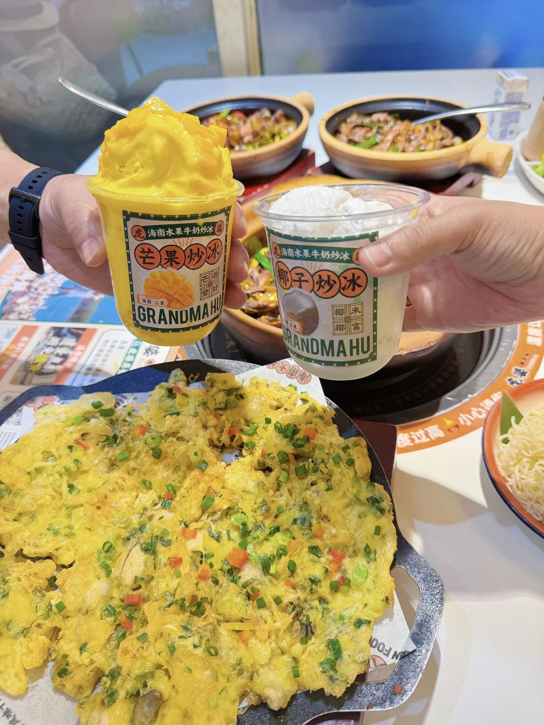 虎婆香草鸭也很绝[点赞R]香草和鸭肉的搭配,清香不腻,鸭肉炖得软烂入味,汤汁泡饭🍚或者泡方便面我和娃👧都能吃两大碗!芒果炒饼、椰子炒冰也很👍,天天吃都不腻