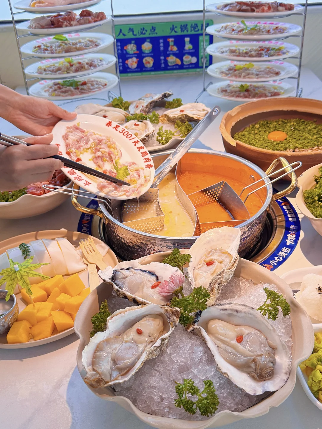火锅也好吃😋太琼糟粕醋火锅,酸辣开胃,涮上海鲜、豆腐、粉条,每一口都超满足。加上秘制酱料特别上头,吃完浑身冒汗,超舒服!