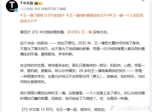 是啊几乎没人敢纯素颜拍杂志,走红毯,拍纪录片,这些王一博做了还不止一次,可见酷盖颜值的抗打,他也根本就没把颜值当回事,