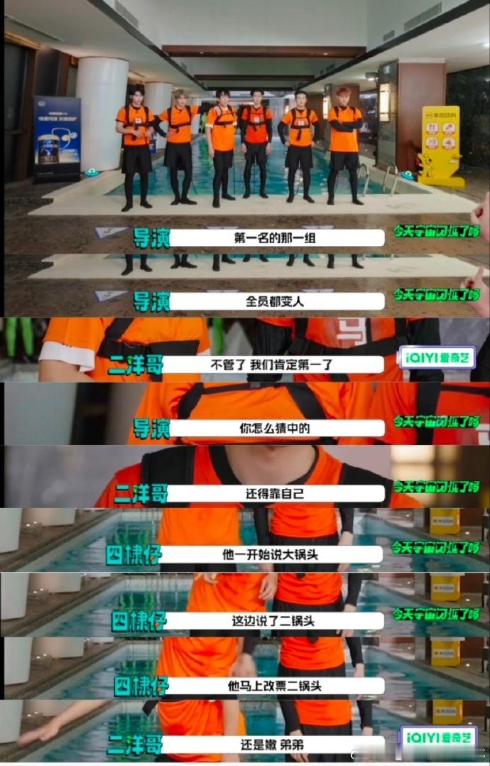 王鹤棣于洋使坏有得是力气和手段 你两耍我!我拿你们当乐子看,没想到你们实力这么强!今天 宇宙闪烁请注意 衍生放送,我一听到泳池我就什么都不困了,还想着王鹤棣和于洋两个人在一起,落水的话,又有笑料又有料,结果没想到你俩居然第一把赢得这么轻松!一看刘耀文跟着黄晓明改票,你们立马就能锁定正确答案是 “大锅头”,果然,在这种使坏的环节,你俩还是太经验老道了!整个过程中,就充斥着两字儿 —— 自信,一开始就说自己一定能拿第一,在大哥和小弟言辞闪烁之间又能精准判断,最后获得成功后王鹤棣还臭屁地说他和于洋两个人在一组太强了,我说你俩这个组合给我锁死吧,好喜欢你们这种贱兮兮的高智商啊~