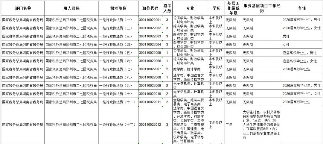 🌟头图有4页,第1、3页为二七区、惠济区税务局报名人数,第2、4页为二七区、惠济区税务局职位表,图片可放大。 🌟时间截至10月20日19:00分,距离报名结束还有3.5天。 1⃣️在二七区税务局的12个职位中,2003,2004,2008报名人数较多,尤其是2008岗位,达到1:700。这里面2003和2004分别是经济学类、财政学类、财会审计类的不限制毕业年限岗位,而2008岗位则是法学类、中国语言文学类、新闻传播类的不限制毕业年限岗位,反映出非应届岗位因为避开郑州开发区岗位导致的第一波聚集。值得注意的是,2009和2010两个岗位虽然要求2026应届,但是聚集度高于之前分析的金水、高新,避热门区域反应强烈。另外,二七区“四项人员”2012岗位达到3:44,呈现出招录人数多聚集和相对非热门区域聚集两种特点。 2⃣️从惠济区税务局的8个职位来看,整体比较平稳,主要原因是惠济区只有2026应届和应届岗位,仅有的一个不限制毕业年限的岗位5008,也是“四项”人员岗,四项人员1:12,有待观察。惠济区的5005呈现出和之前分析的中原区1006一样的人数聚集分布特征。