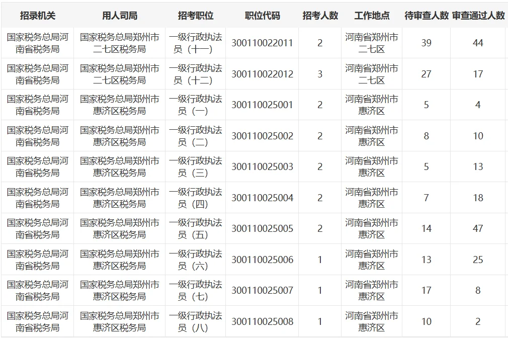 郑州市二七区、惠济区税务局报名人数分析