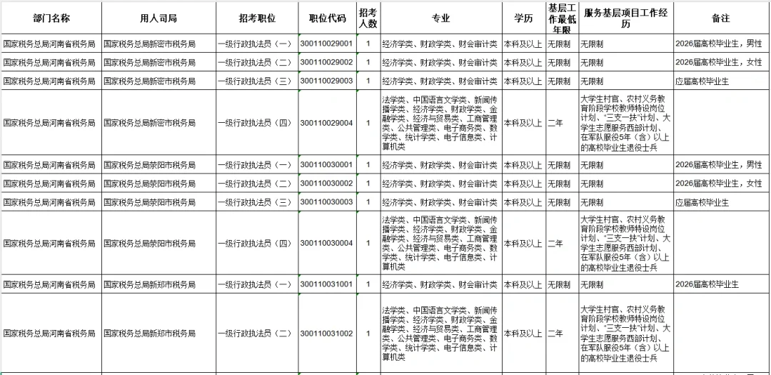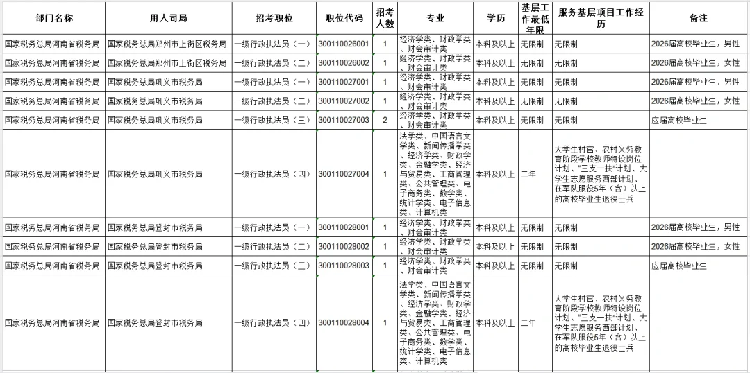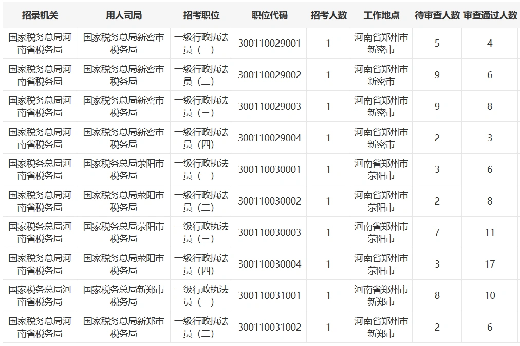 🌟头图有4页,第1页是上街区、巩义市、登封市税务局的报名人数,第2页是对应的职位表。第3页是新密市、荥阳市、新郑市税务局的报名人数,第4页是对应的职位表。图片可放大。