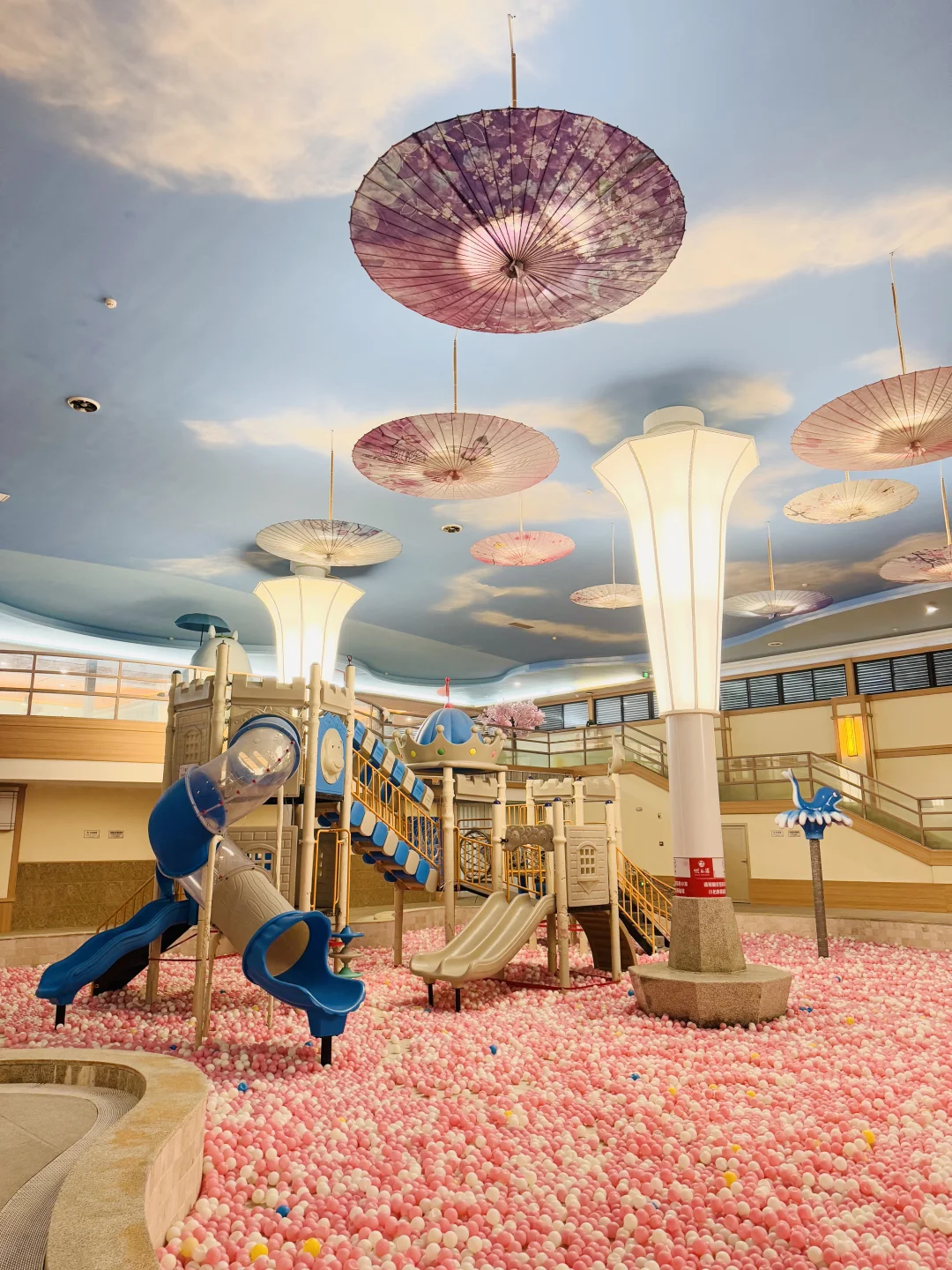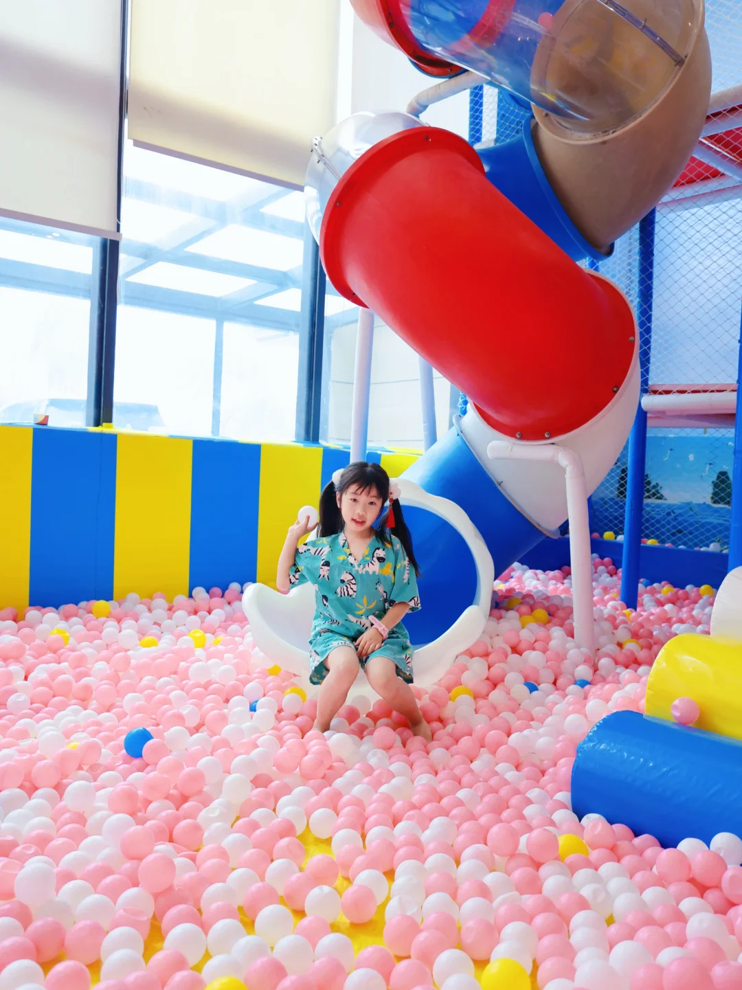 汤泉区简直带娃天堂!室内空调宝宝随便撒欢~🈶专属儿童游乐场,滑滑梯🛝、蹦床、秋千、海洋球池,光这里就可以玩半天!重点是——水果+饮品无限畅吃‼️橙子、哈密瓜、酸奶、红牛、牛奶🥛……边泡汤边炫水果,这待遇也太爽了吧😋