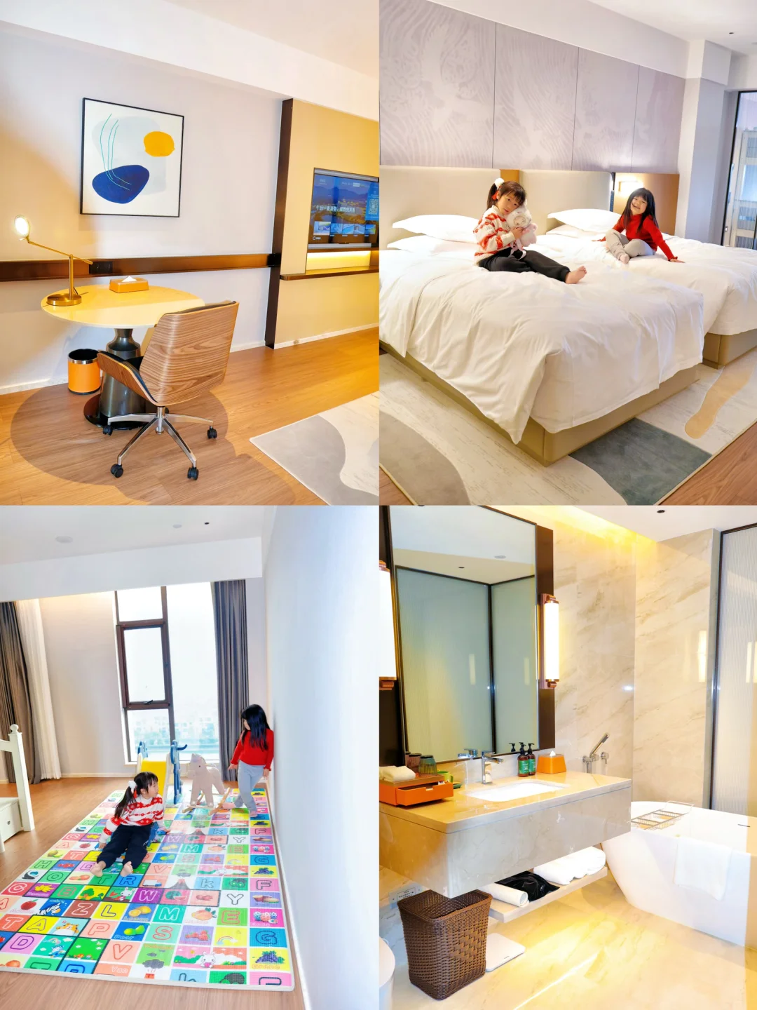 📍亲子双床房宽敞又贴心,还有小滑滑梯🛝、摇摇马可以玩耍,儿童拖鞋、牙刷🪥、浴缸🛁甚至工作桌都有,配备很齐全了👍