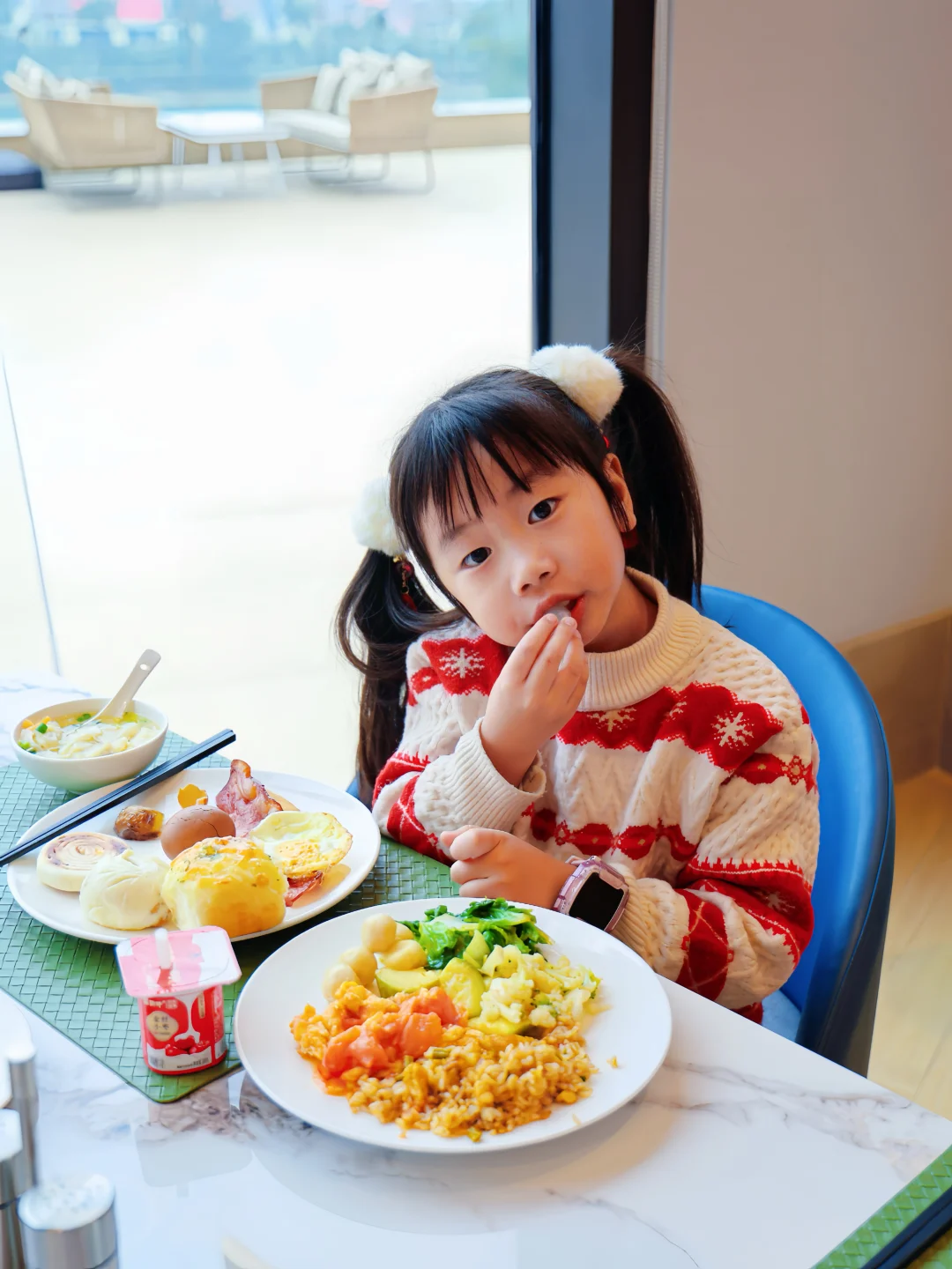 🍳自助早餐种类多到挑花眼,中西式全齐,味道也不错👌不用担心娃挑食饿着了🤣