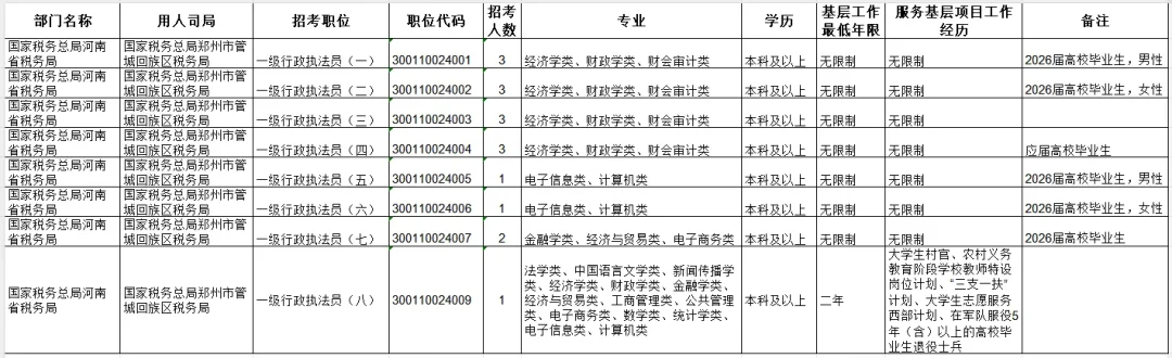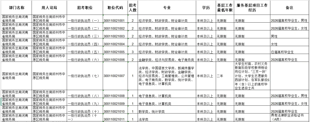 2⃣️从管城区税务局的8个职位来看,4003职位因为招录3人且不限制性别和毕业年限比较聚集,4007虽然限制了2026应届毕业生,但是专业限制金融学类、经济与贸易类、电子商务类,导致也有50人的报名。其他职位均有待观察、观望态势明显。