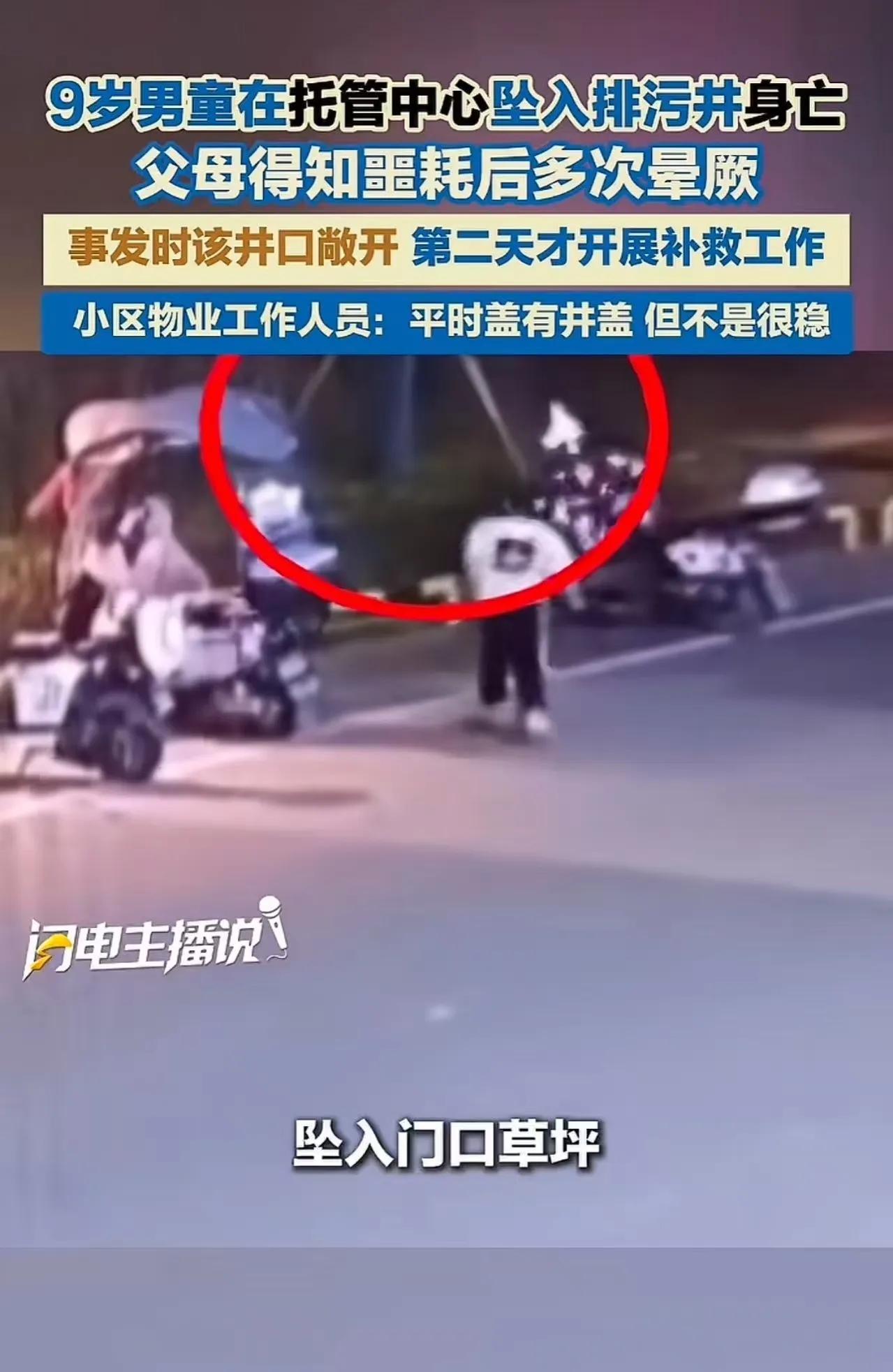 9岁男童在托管中心坠入排污井身亡,父母得知噩耗后多次晕厥!孩子母亲:“井没井盖,托管机构也未看护单位!”可小区物业却回应,井盖是完好的,是没盖好还是被挪开,有待调查!