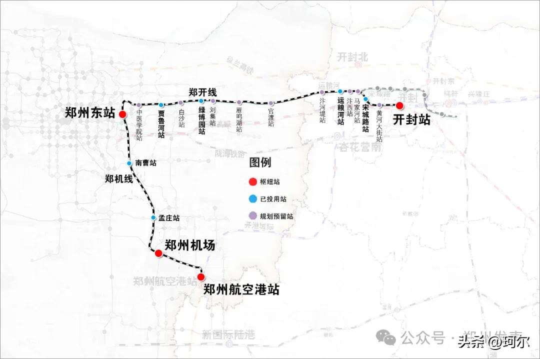 郑开、郑机城际线走向图 图源珂尔