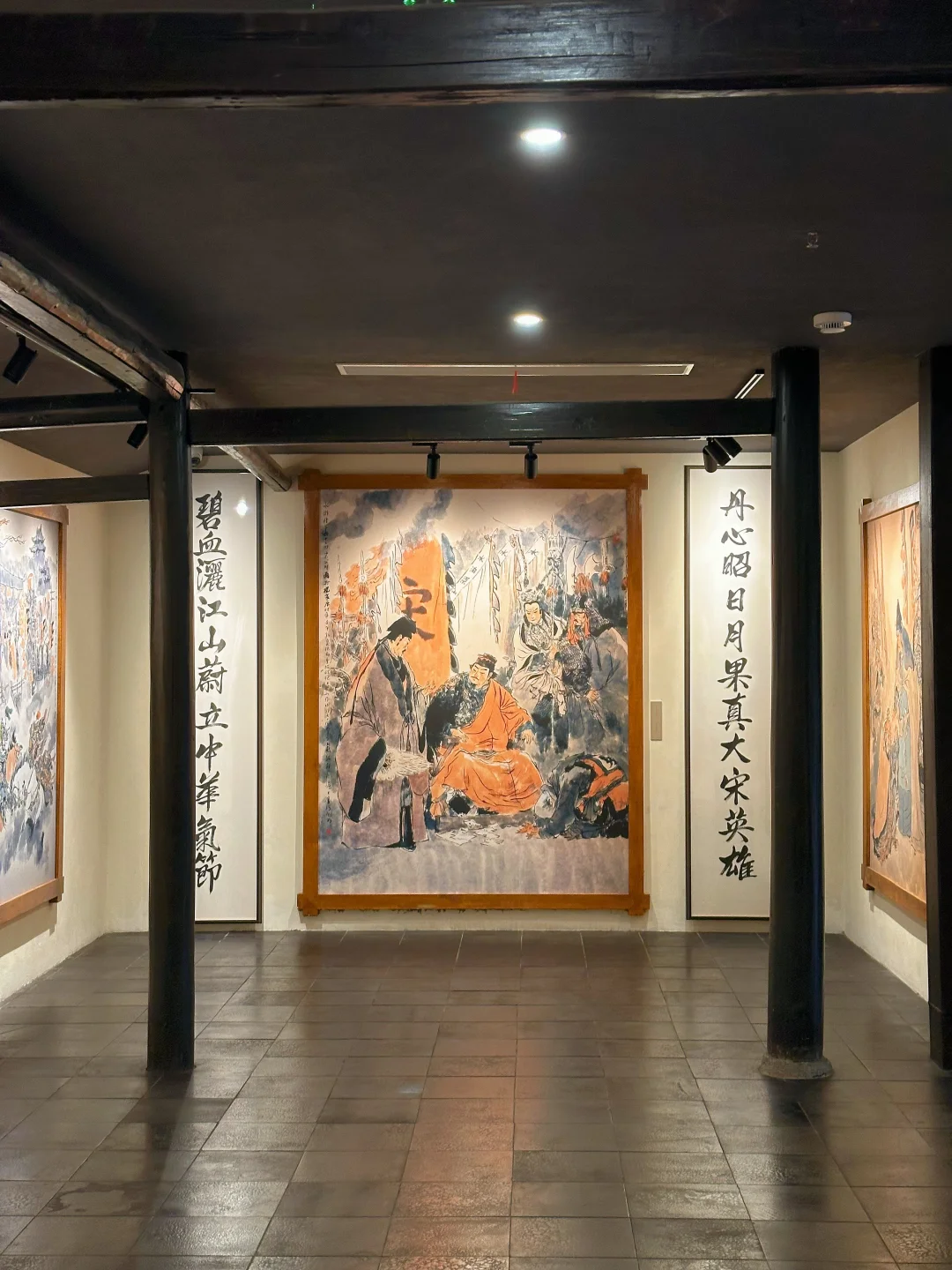 进门先冲水浒展厅,戴敦邦先生笔下的梁山好汉个个自带气场。武松打虎的动态张力、李逵挥斧的刚猛气势,每一幅画都像在放武侠大片,拍一张与好汉同框的照片,朋友圈文案直接写“今天我也是梁山好汉!”