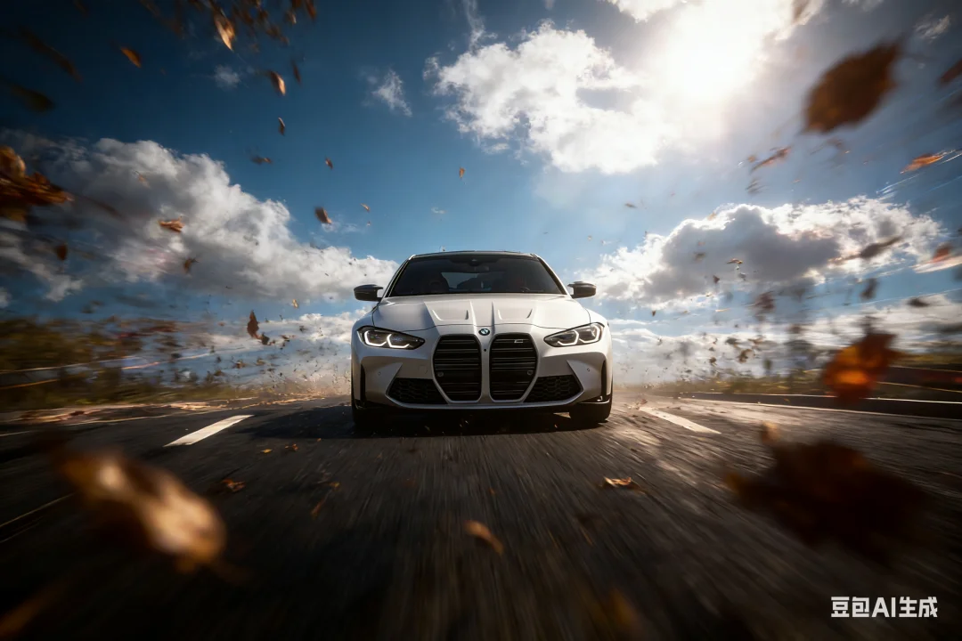 魔法咒语: 游戏CG风格,极具艺术感、震撼人心,色彩丰富,暗部叠加,特写镜头,超高清。落叶飞溅,前景落叶虚化,动态模糊,背景动态虚化,阳光灿烂,蓝天白云,光影交错,仰拍特写镜头,突出速度感和视觉冲击力,强透视。