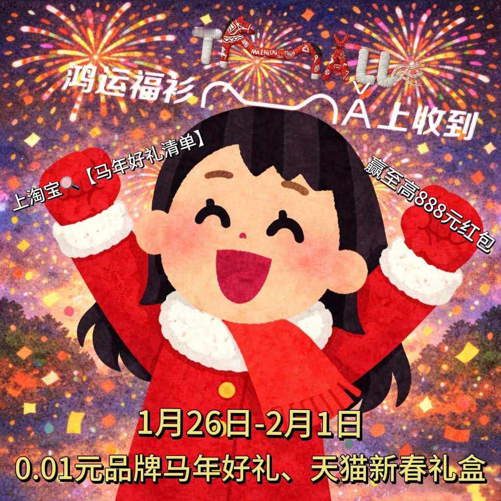 马年祝福谐音梗天猫年货MA上收到马年祝福来啦,时间:1月26日-2月1日上🍑搜索【马年好礼清单】至高赢888元hb,更有0.01元品牌马年好礼、限量天猫新春礼盒、大额优惠券等你来!万万没想到吧!