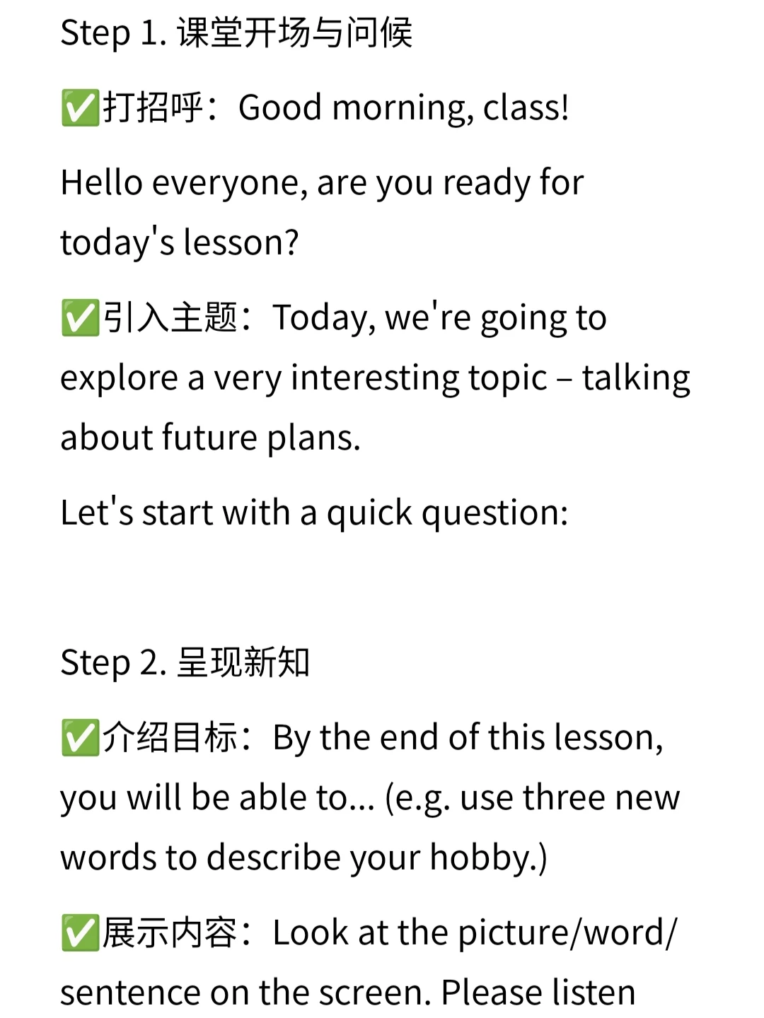 ✅引入主题:Today, we're going to explore a very interesting topic – talking about future plans.