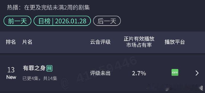 魏大勋孙千有罪之身首日云合有罪之身首播云合 魏大勋孙千主演的有罪之身空降首播,登