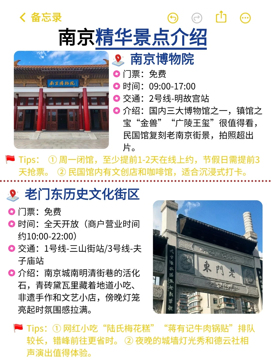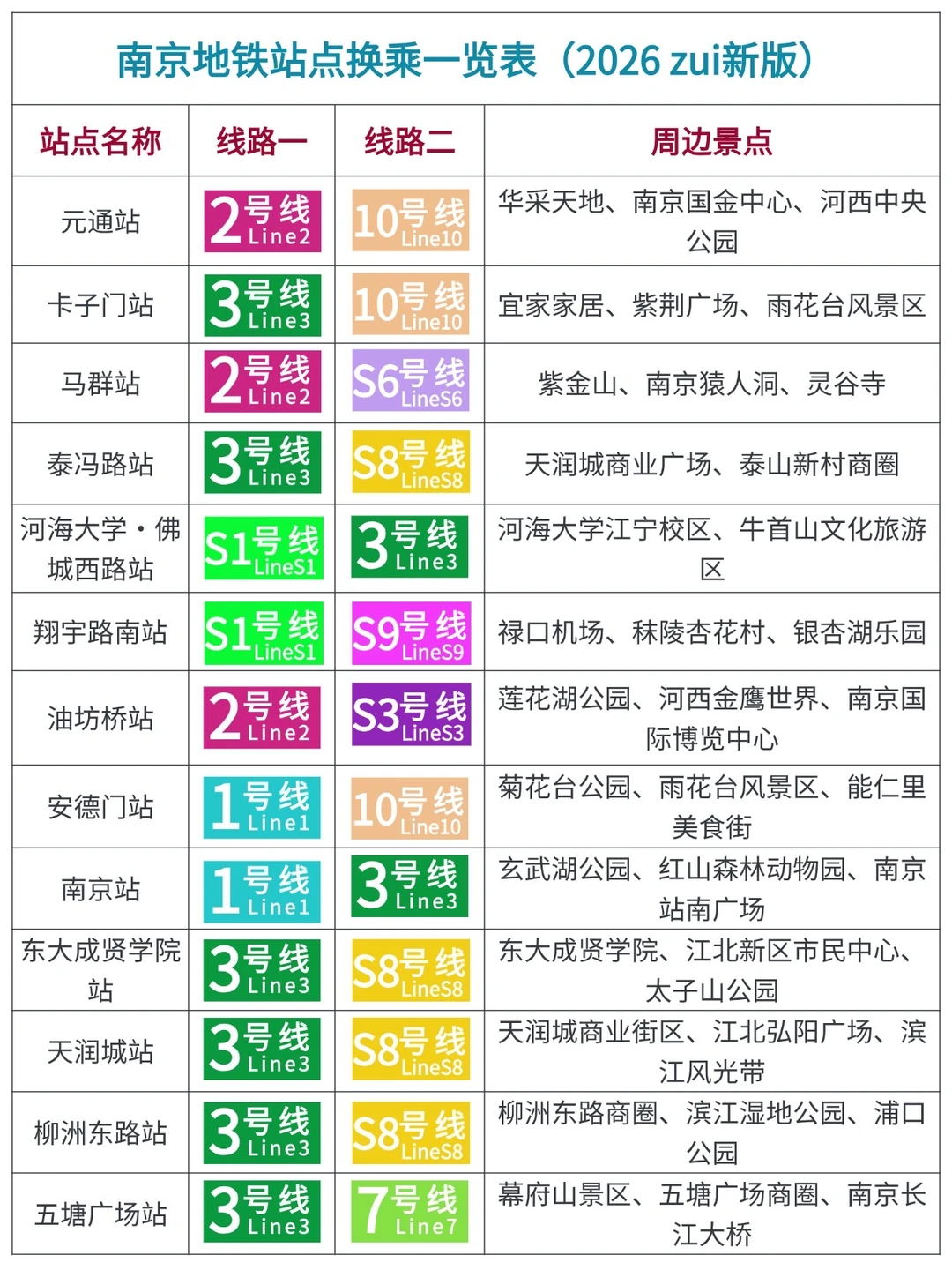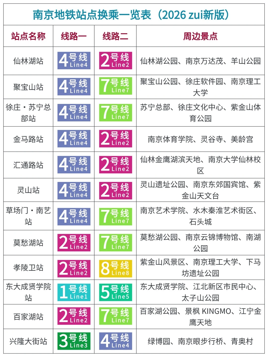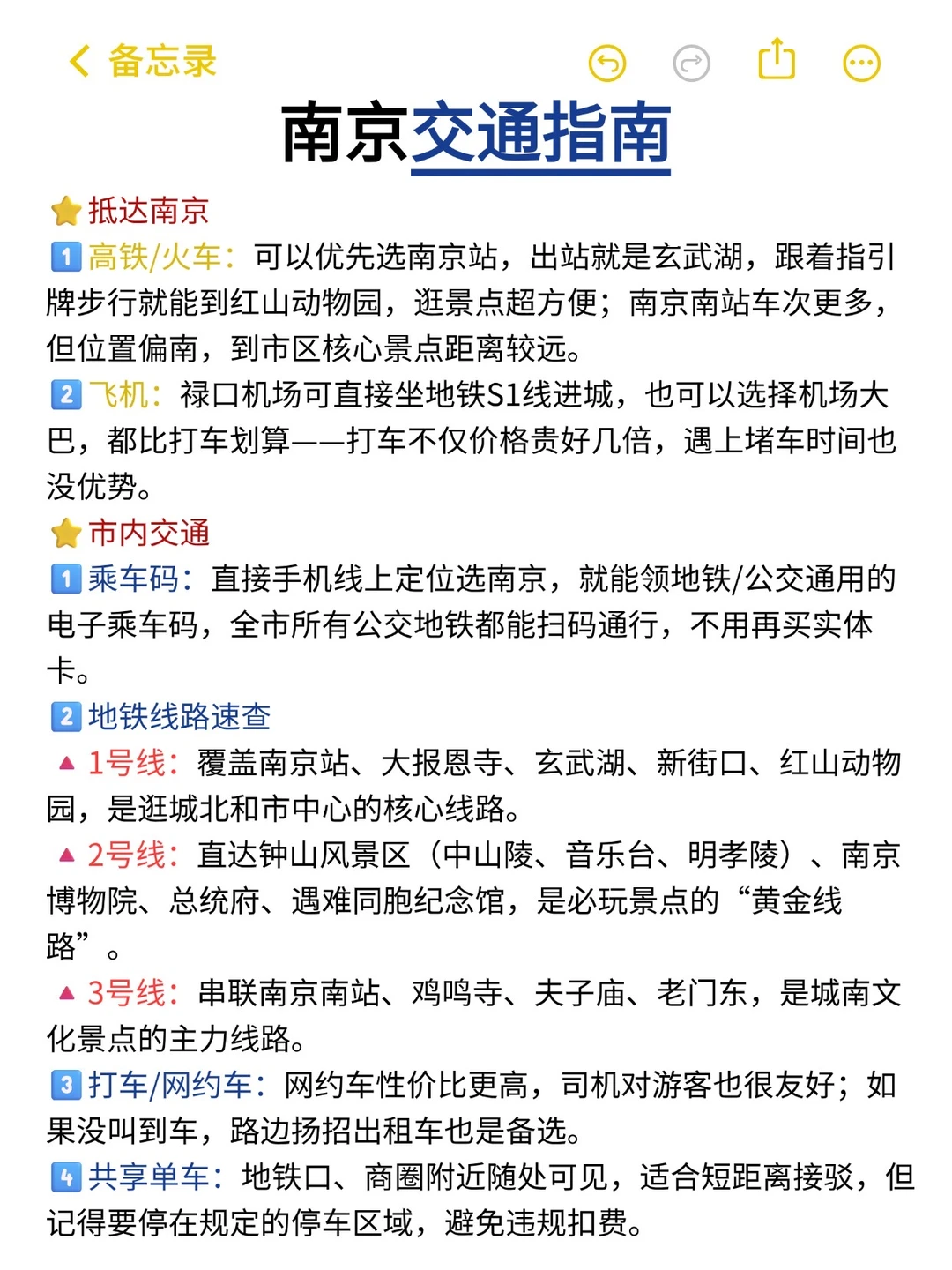 🔺1号线:覆盖南京站、大报恩寺、玄武湖、新街口、红山动物园,是逛城北和市中心的核心线路。