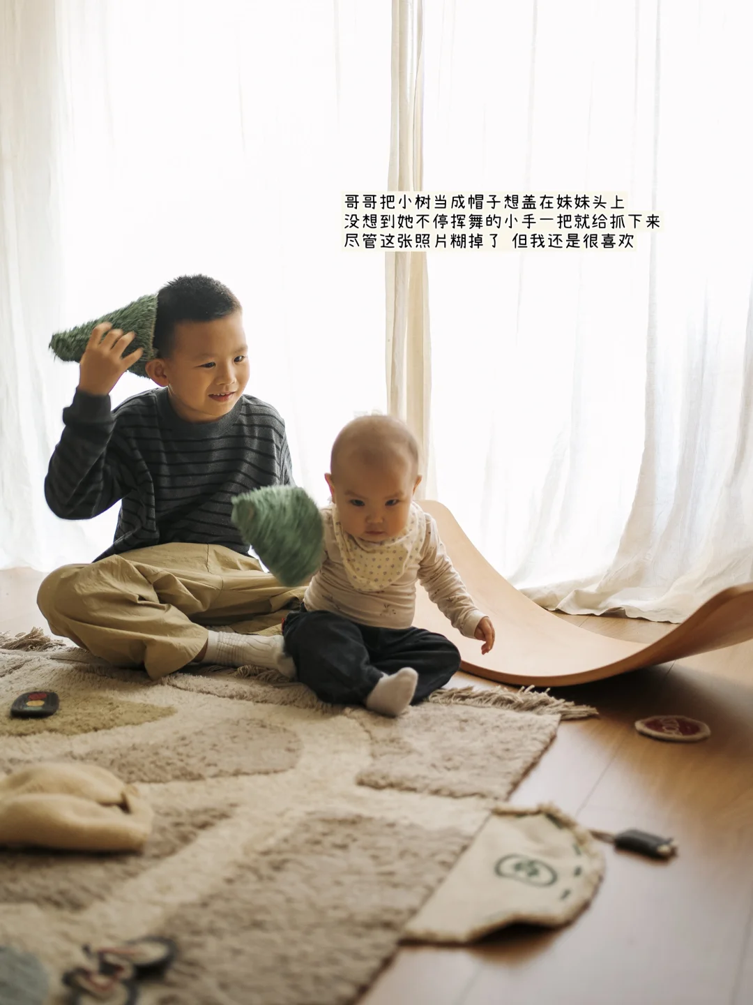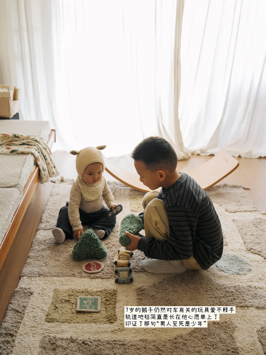 一块有意思的地毯让兄妹俩的互动变得格外有趣。