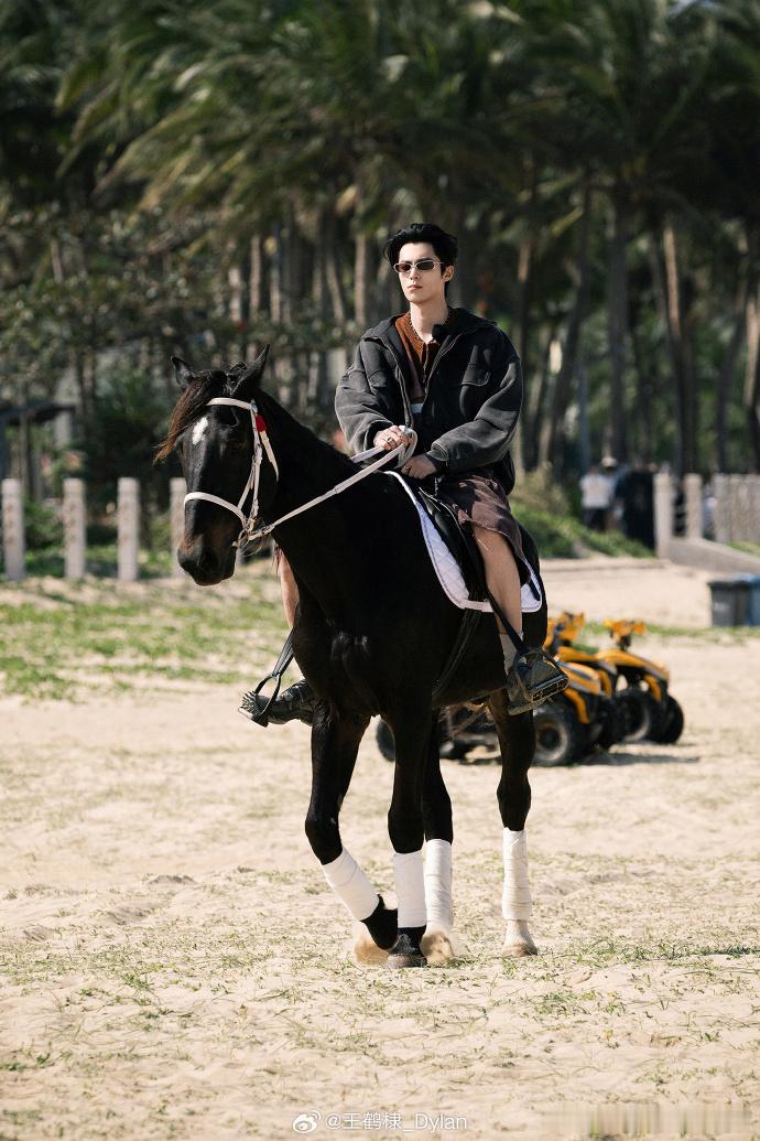 王鹤棣比嘘王鹤棣优雅骏马王鹤棣穿全黑在海边骑马出场,和黑马的搭配很有视觉反差,贵