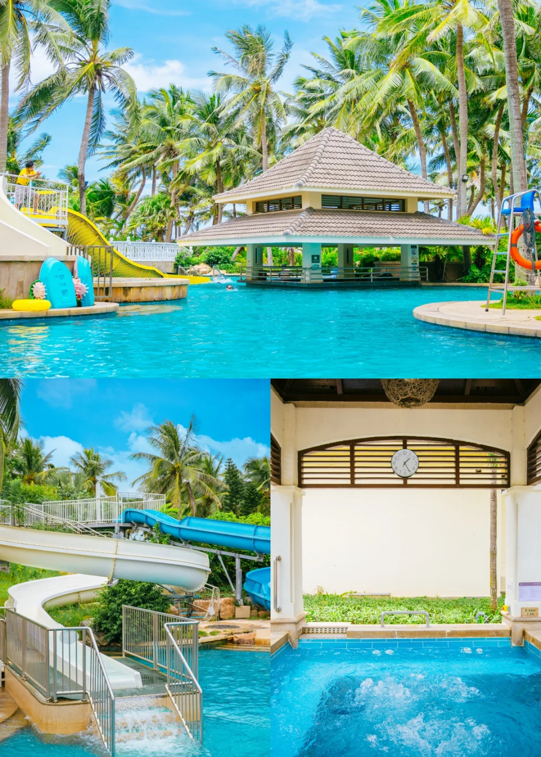 酒店设施真的戳中亲子家庭!穿过热带花园就是一线海景沙滩,沙质细腻人还少,免费借挖沙工具,下午还有沙滩堡垒活动。天然地热火山温泉泡着超治愈,看着海景卸去疲惫,水上乐园的旋转滑道、彩虹水枪大战,娃玩到不想走。