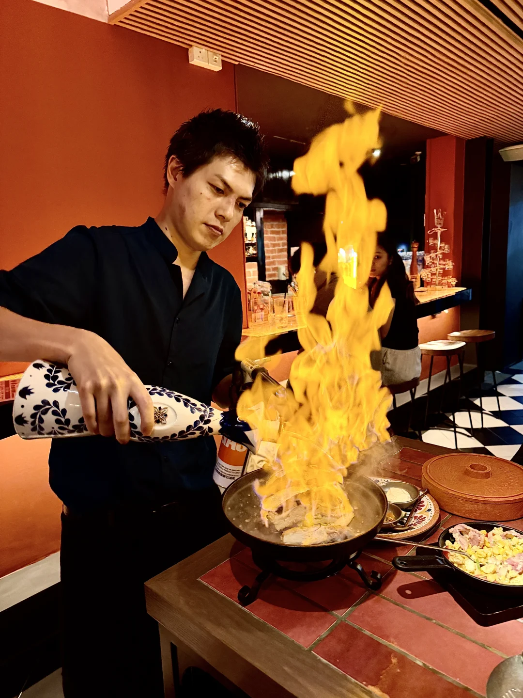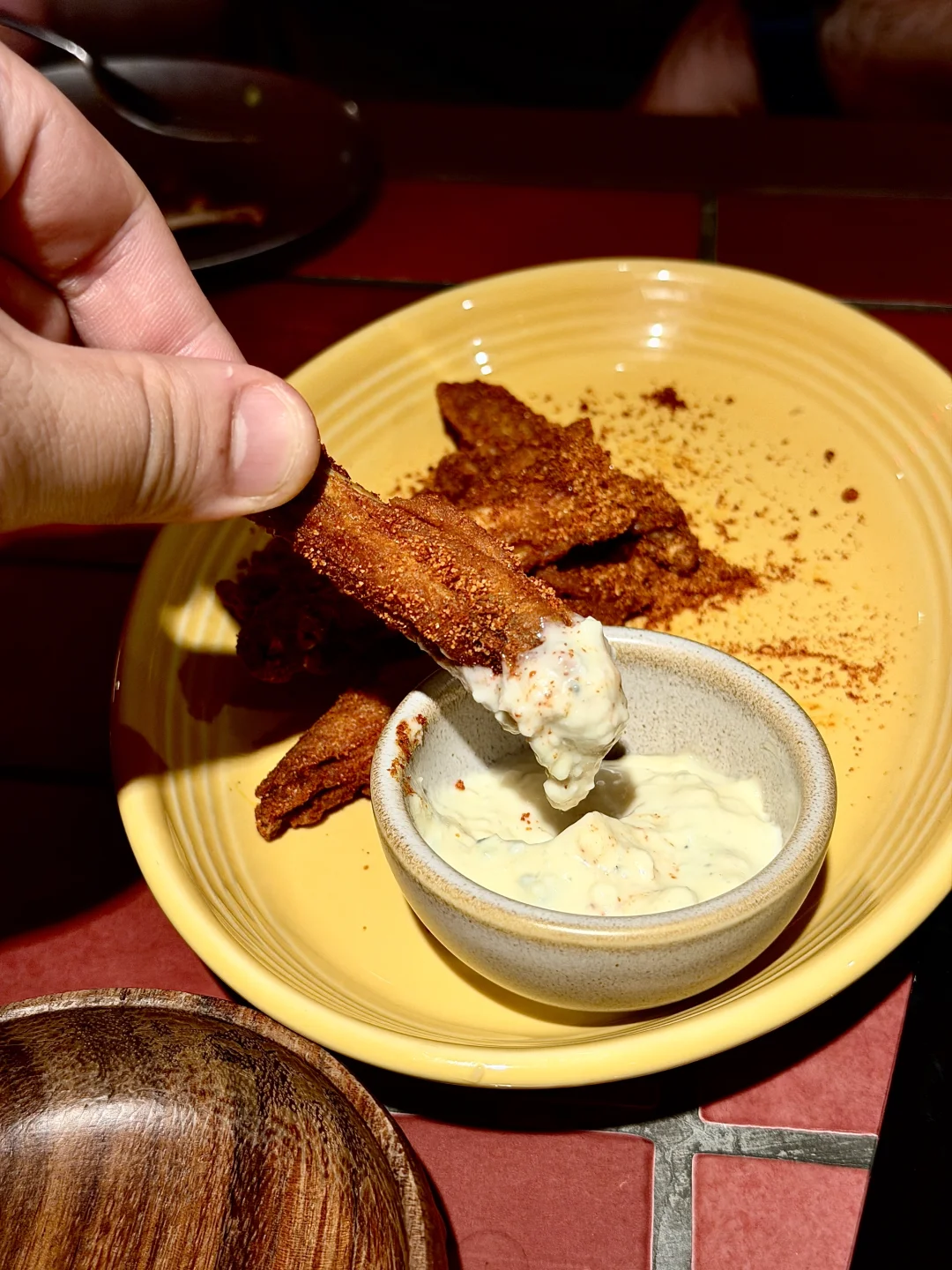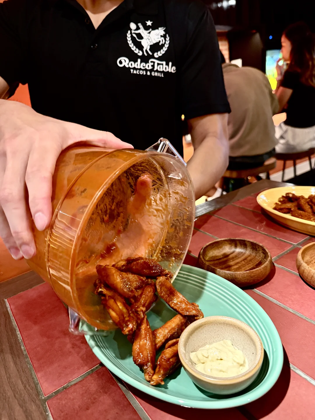 鸡腿肉不是鸡胸,桌边直接点火,上来一整锅在滋啦响,烟火气拉满。健身人士非常非常非常友好!!! 🍗 Buffalo Wings(Spiced Dried)