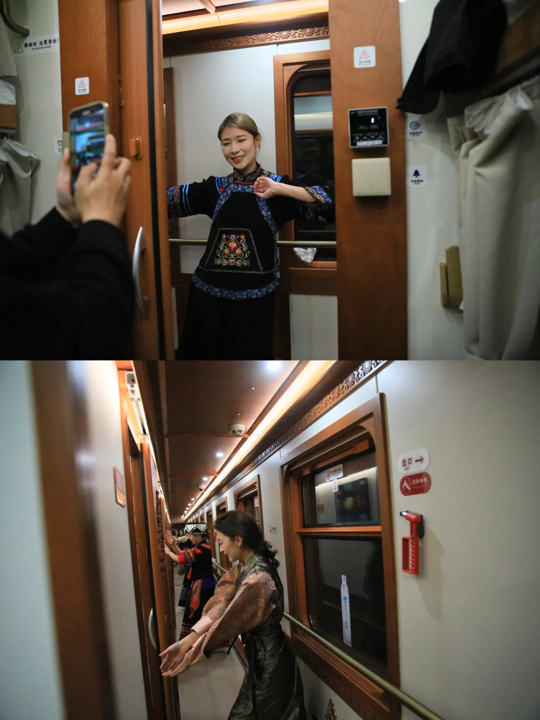 列车外观一眼就爱上!金色孔雀涂装超亮眼,停在站台时好多人拍照,不愧是昆明文旅打造的专属列车。我们订的4人间,10平米空间刚好容纳一家四口,0.75米宽、2米长的上下铺,娃睡上铺超兴奋,爸妈睡下铺也不挤。公共卫浴打扫得很干净,热水随用随有,完全不用操心洗漱问题。同行的亲戚选了3人间,12平米带独立卫浴,空间更宽敞,下次来想试试这个房型。