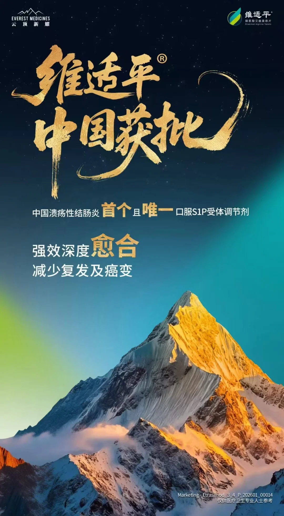 今日宣布中国国家药品监督管理局已批准维适平®(精氨酸艾曲莫德片, VELSIPITY®)的新药上市许可申请,用于治疗对传统治疗或生物制剂应答不充分、失应答或不耐受的中度至重度活动性溃疡性结肠炎成人患者。作为新一代高选择性S1P受体调节剂,维适平®每日一次口服,可实现快速起效和强效深度黏膜愈合,并具有良好的安全性特征,为成人溃疡性结肠炎患者提供新的一线治疗选择。