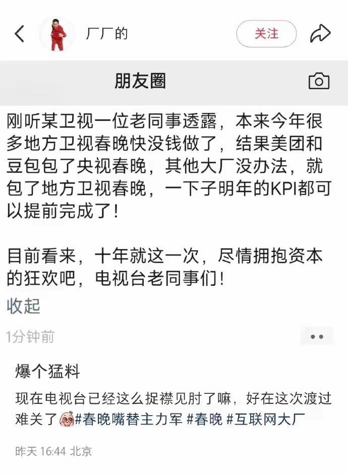 纯胡扯,以前也是有限的几家电视台做春晚,有的电视台。根本就不碰春晚,太阳是公鸡叫起来的吗?