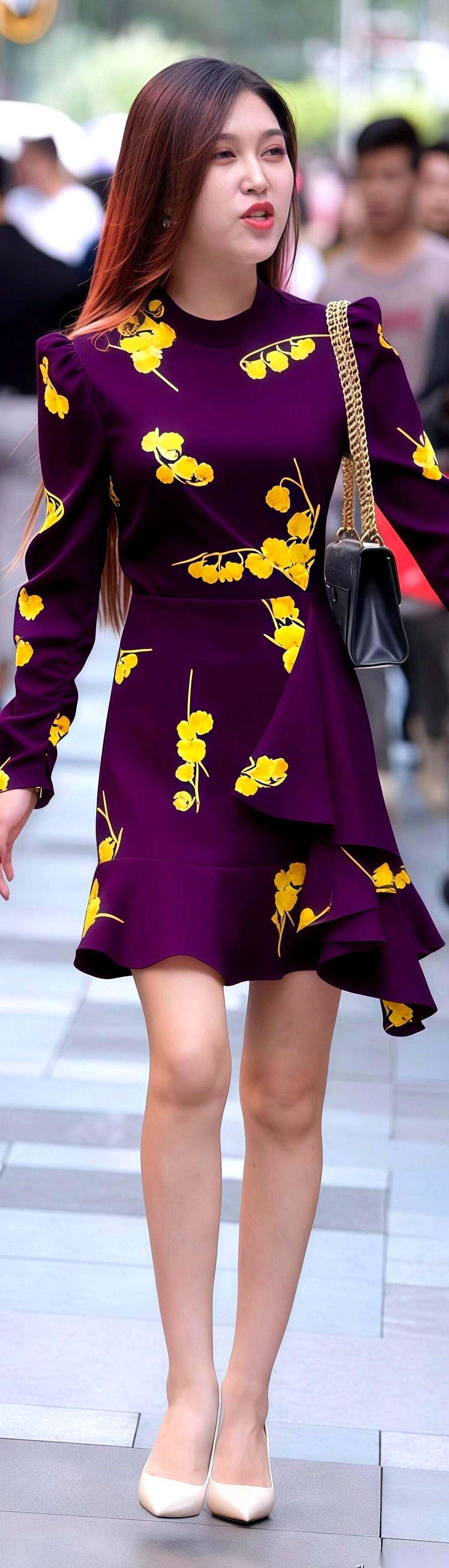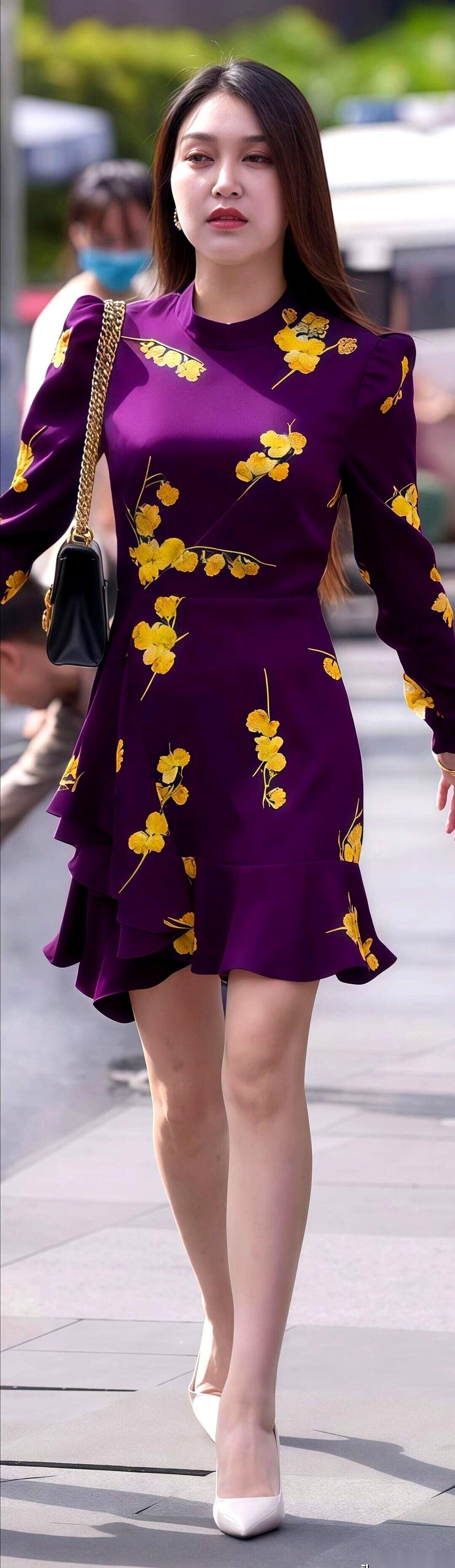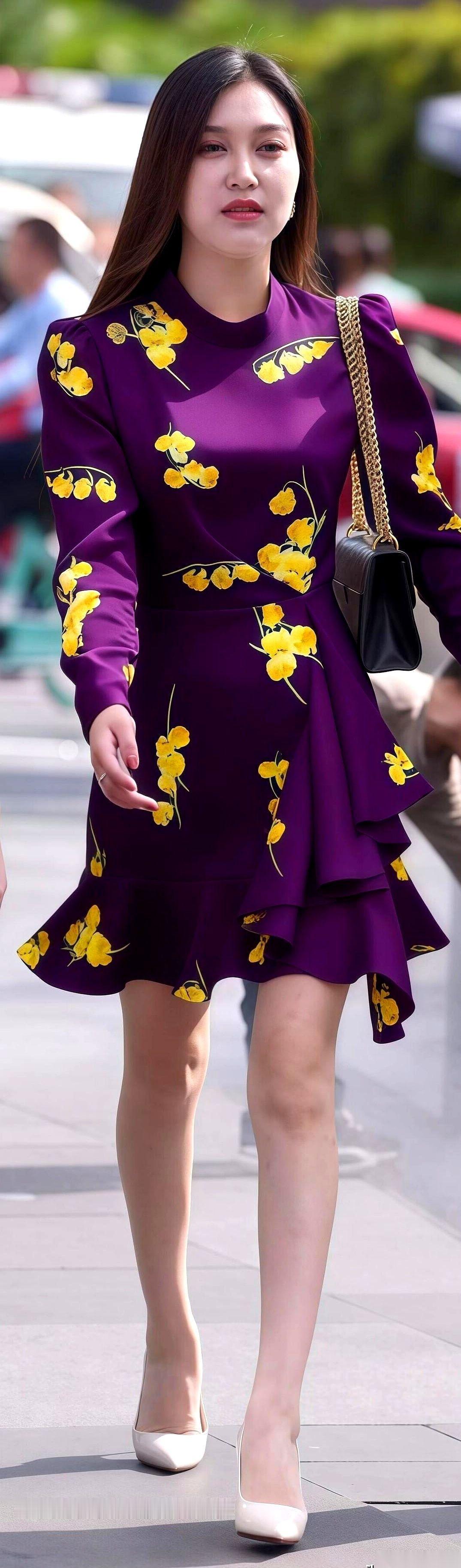 说真的,有些衣服,就是战袍。 尤其这件,紫得像要把整个春天都吞下去,上面还开满了那种,明晃晃的、不管不顾的黄花。 穿上之前,我还在想,会不会太夸张了啊?会不会有点……装? 穿上之后,对着镜子转了一圈。 去他的。 老娘今天就是要这么高调,这么理直气壮。 人活着,有时候真的需要一点颜色来提醒自己,别总是一本正经,别忘了自己也挺有意思的。生活已经够按部就班了,穿件衣服还瞻前顾后,累不累啊。 踩上我的小白高跟,出门。 去哪儿不重要,重要的是,今天这风,得吹起我的裙摆。