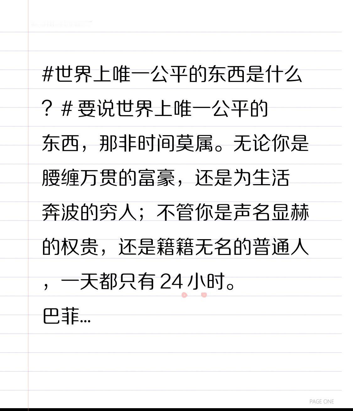 巴菲特在这一天里能谈成大生意,普通人也能利用这一天学习新技能。时间不会因为谁的身份、地位、财富而多给一分一秒。它对每个人都一视同仁,不会偏袒谁,也不会亏待谁。所以,我们更应该珍惜这公平的时间,让每一分每一秒都过得有意义。
