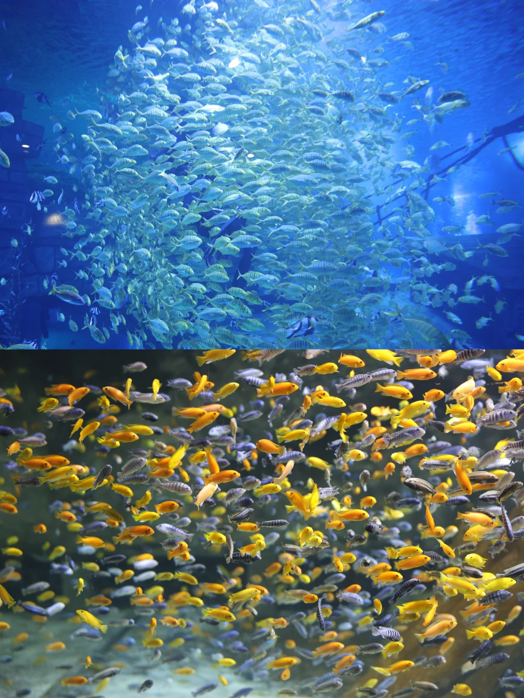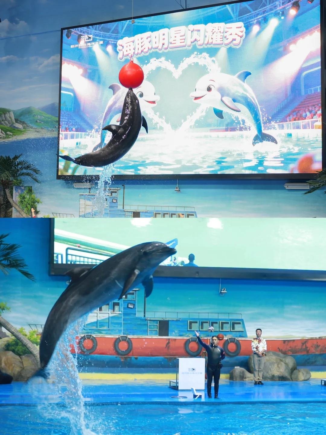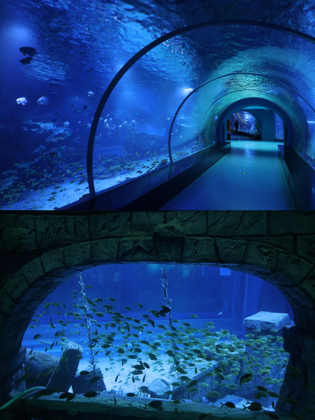 必冲项目先码住!一层海底隧道真的美到失语,巨大的魔鬼鱼从头顶游过,阳光透过水层洒下来,随手一拍都是大片📸 重点夸夸《水下沂蒙颂》表演,俄罗斯小姐姐穿着美人鱼尾在6米深水里跳芭蕾,红色主题超有意义,看完直接起鸡皮疙瘩!