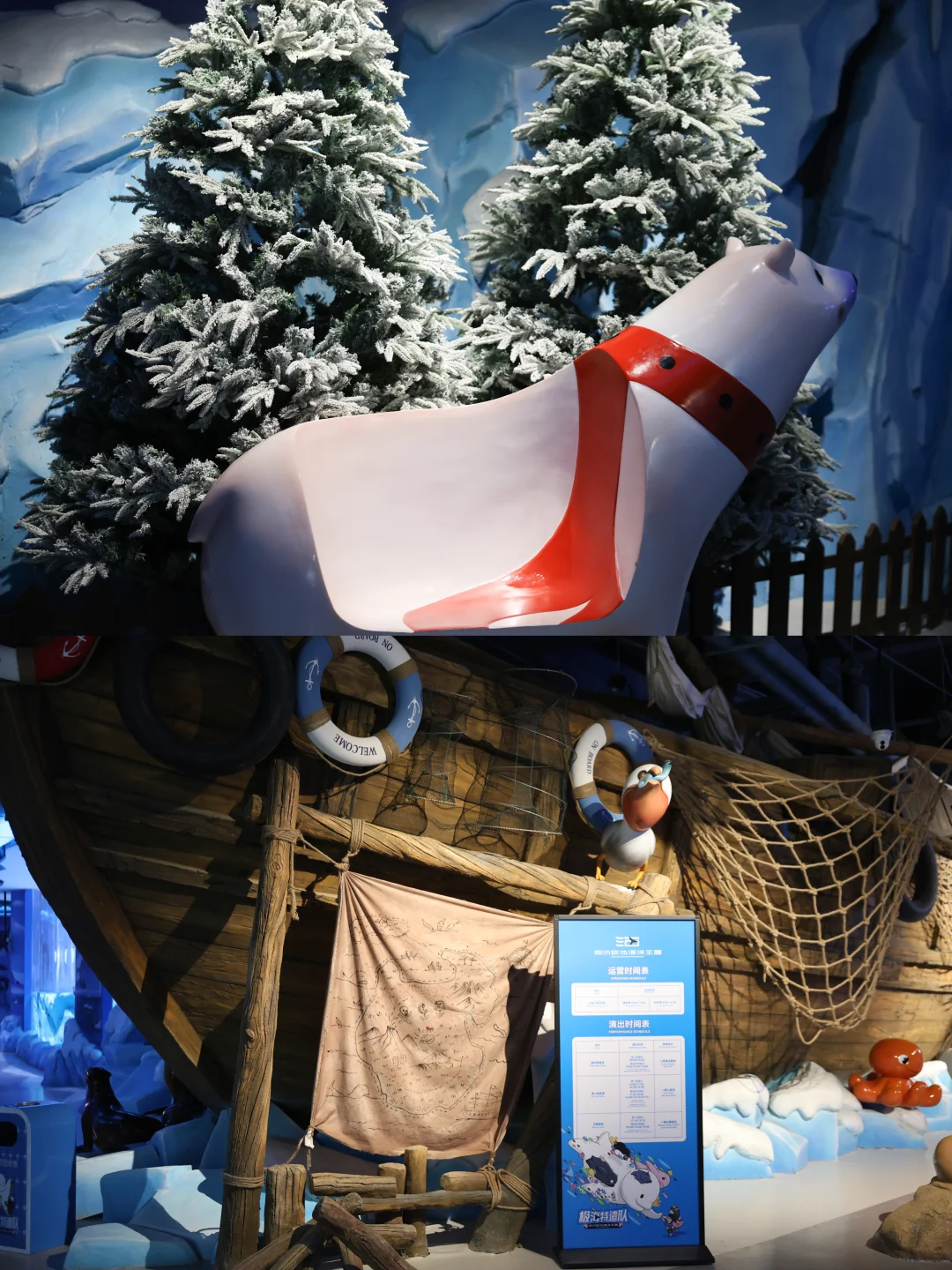 二层极地小镇藏着超多萌物!圆滚滚的企鹅排队走路,北极熊慢悠悠泡澡,海狮海豚表演全程高能,会敬礼会算数还会顶球,小朋友尖叫到停不下来~ 三层热带雨林仿佛闯进亚马逊,垂吊的藤蔓+五彩鱼群,3000㎡无动力乐园太适合亲子互动,娃放电一整天超省心!
