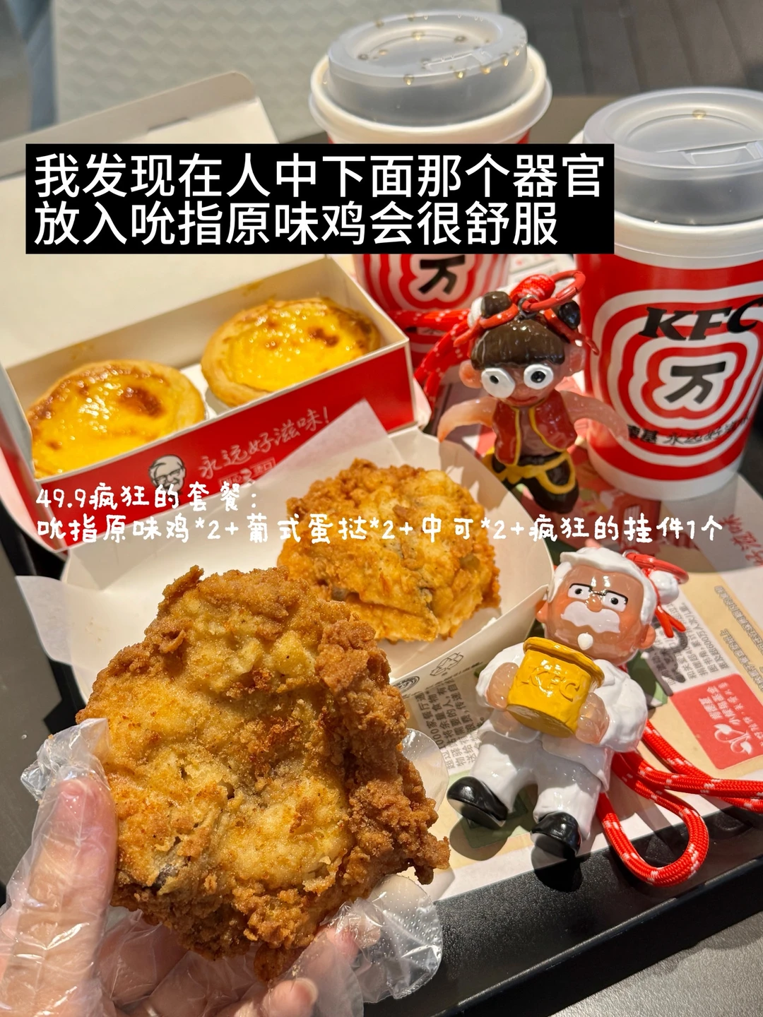49.9疯狂的套餐:吮指原味鸡*2+葡式蛋挞*2+中可*2+疯狂的挂件1个(随机)