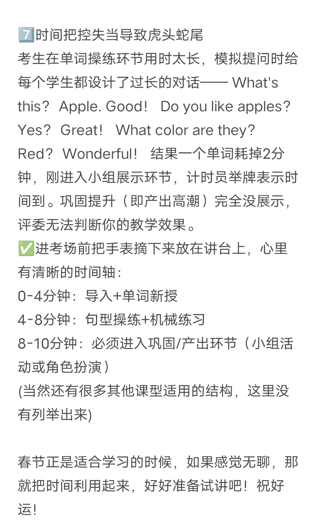 比如讲Colors的主题,花3分钟自己又唱又跳一首复杂的英文歌,评委看得很尴尬,且歌词语速快、动作多,和本课要学的颜色词关联不大。
