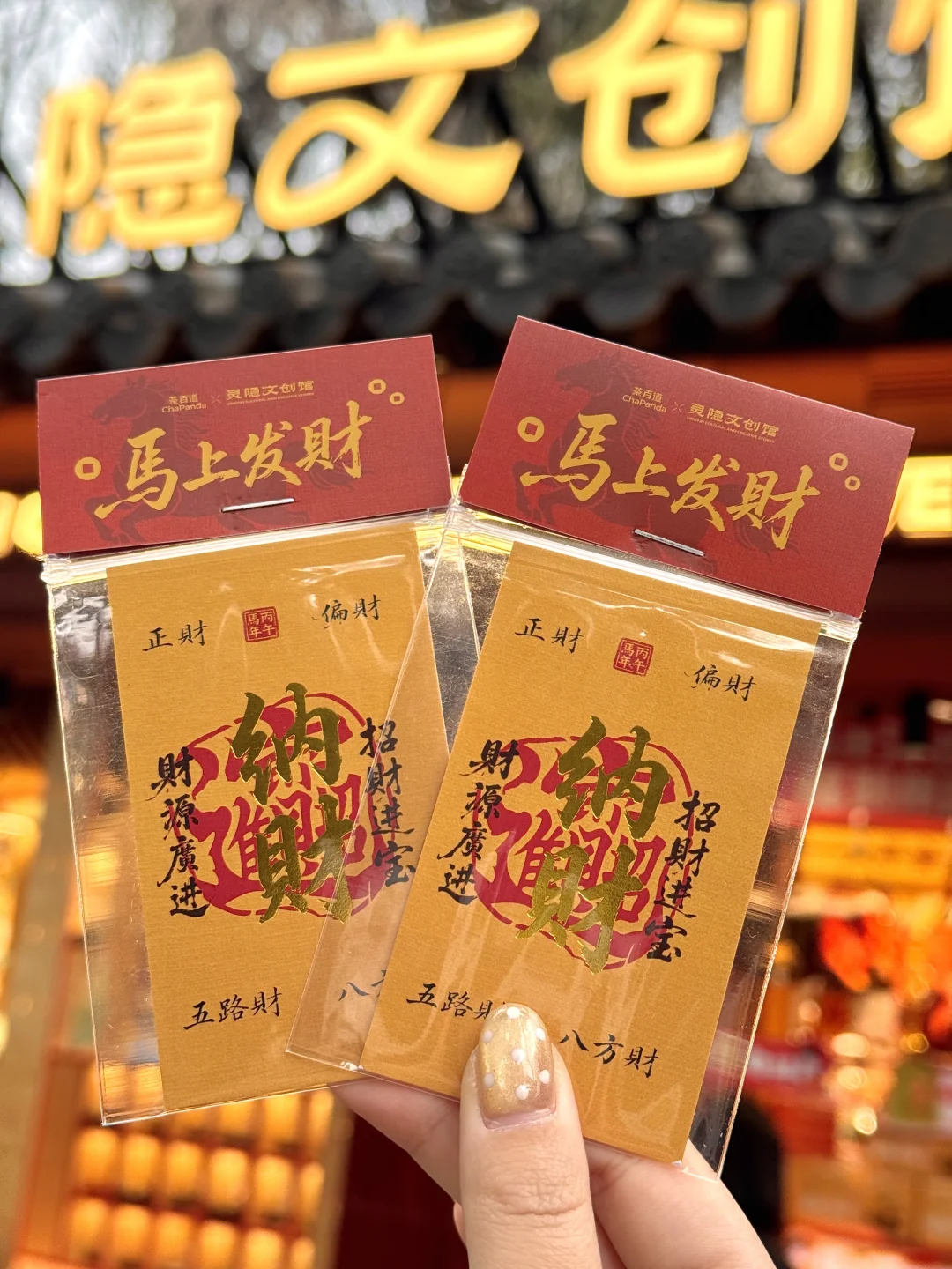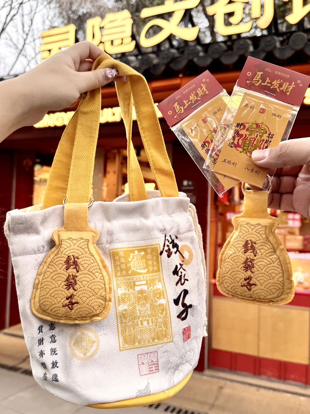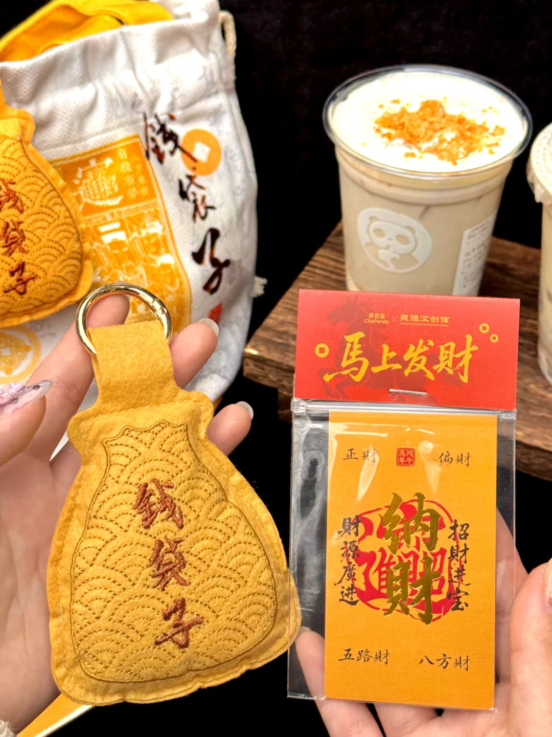 灵隐纳财卡、灵隐钱袋子帆布包、灵隐钱袋子挂件,还有超大一张的灵隐年历🐎…