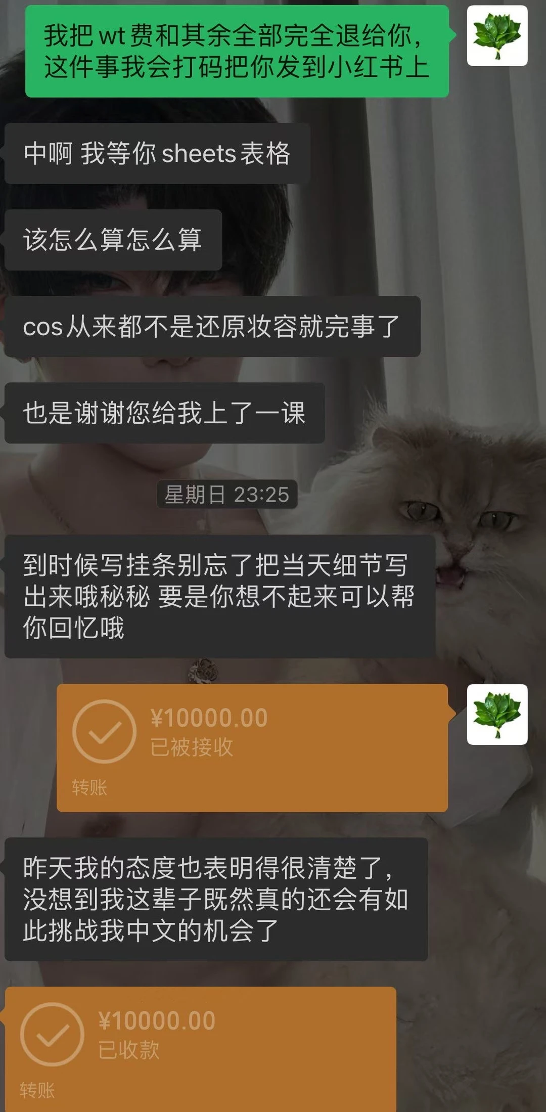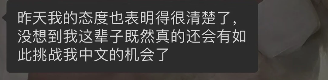 这1万元,借用对方的一句话“谢谢您给我上了一课”“没想到我这辈子既(竟)然真的还会有如此挑战我中文的机会了”。