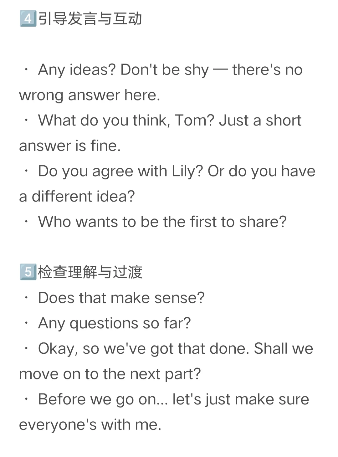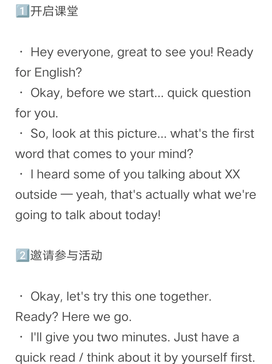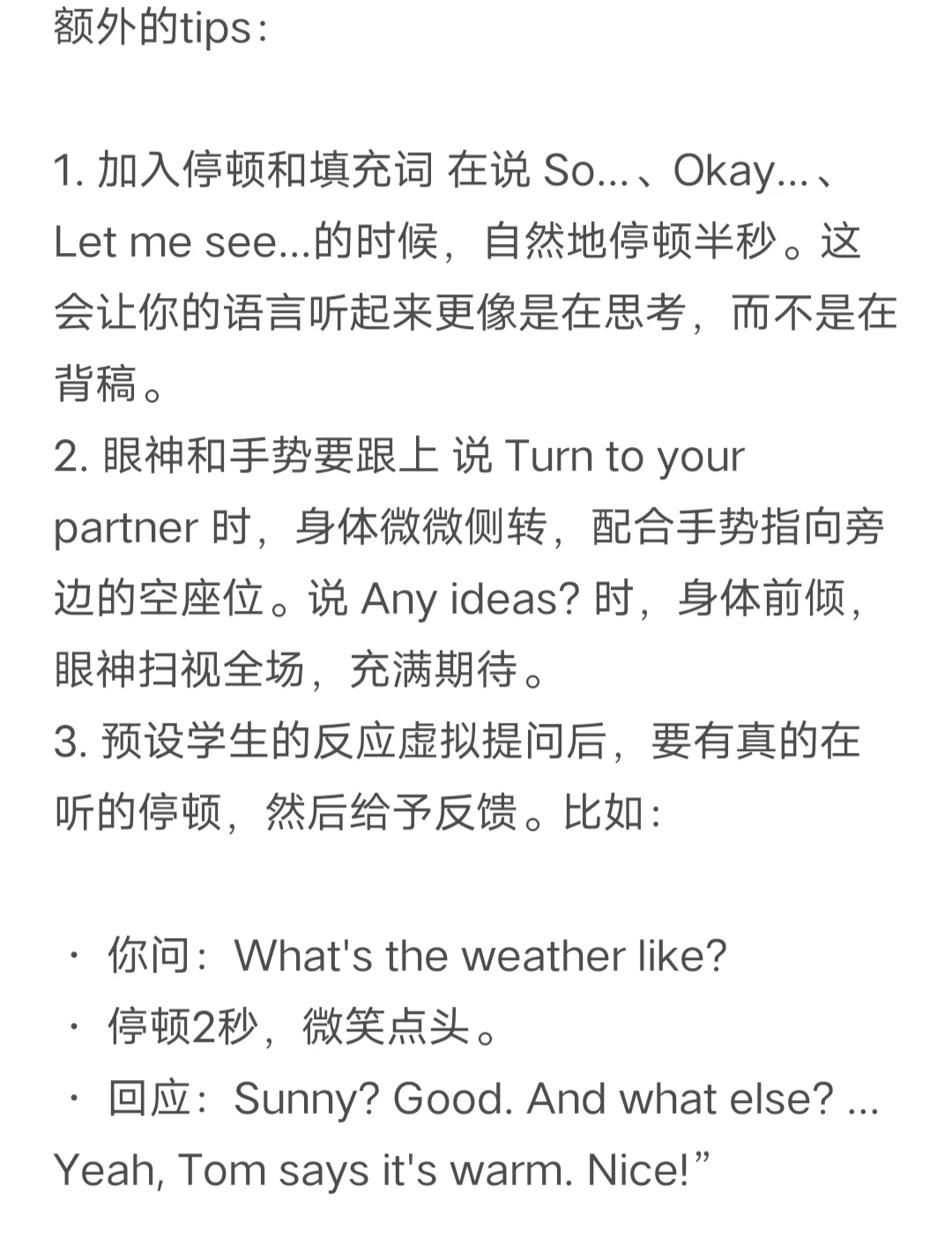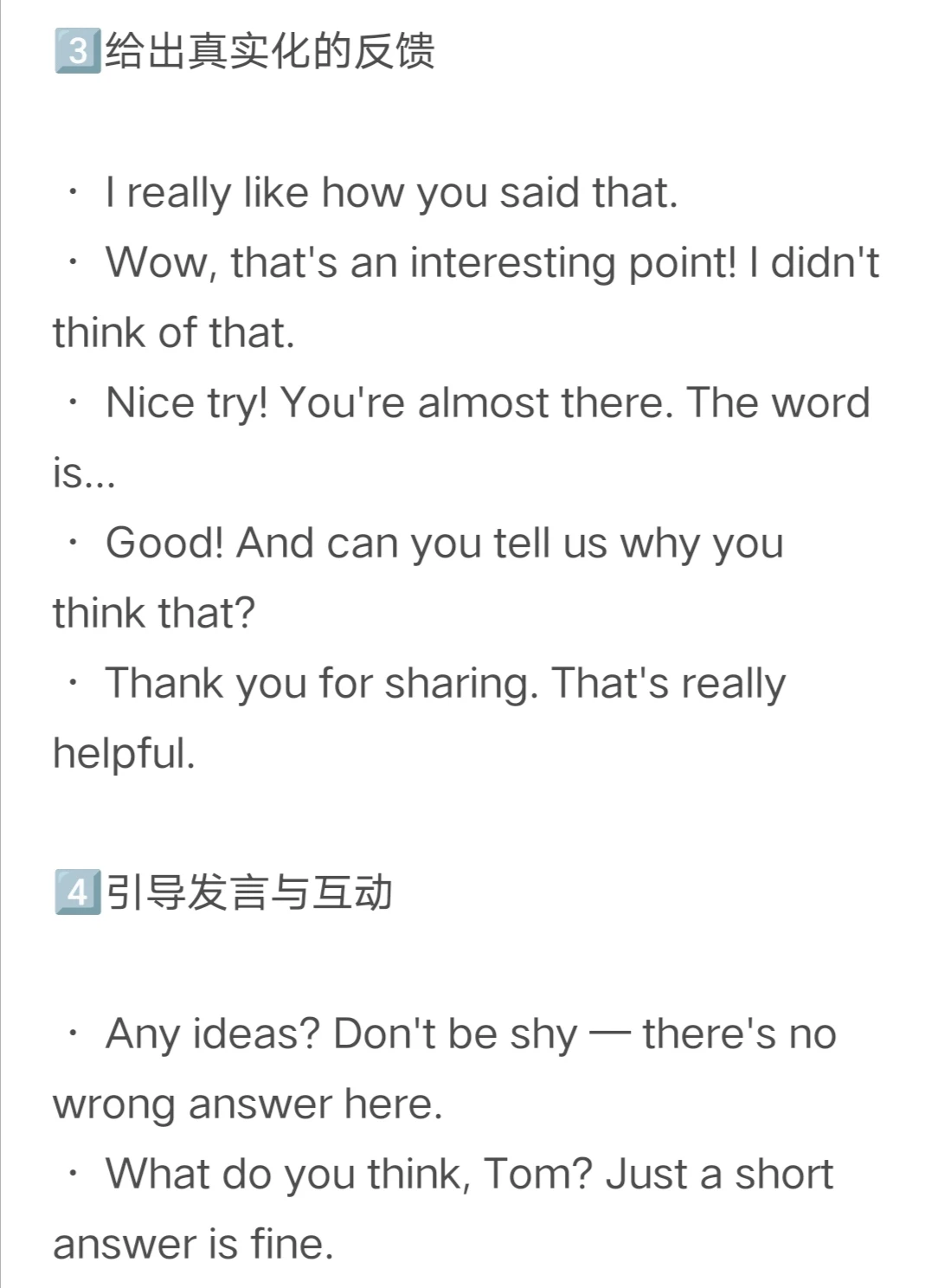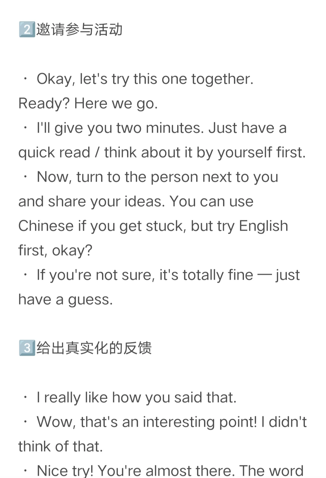 · Now, turn to the person next to you and share your ideas. You can use Chinese if you get stuck, but try English first, okay?