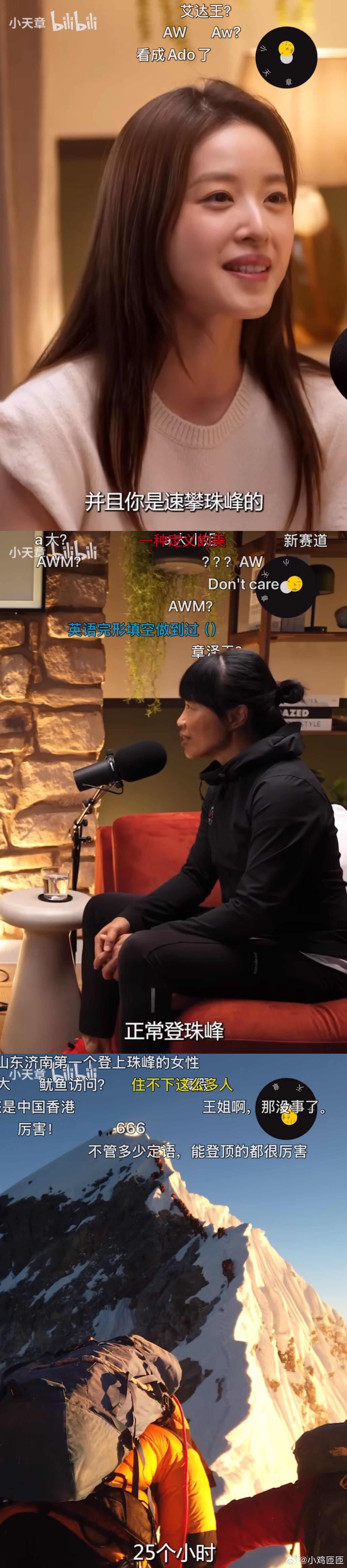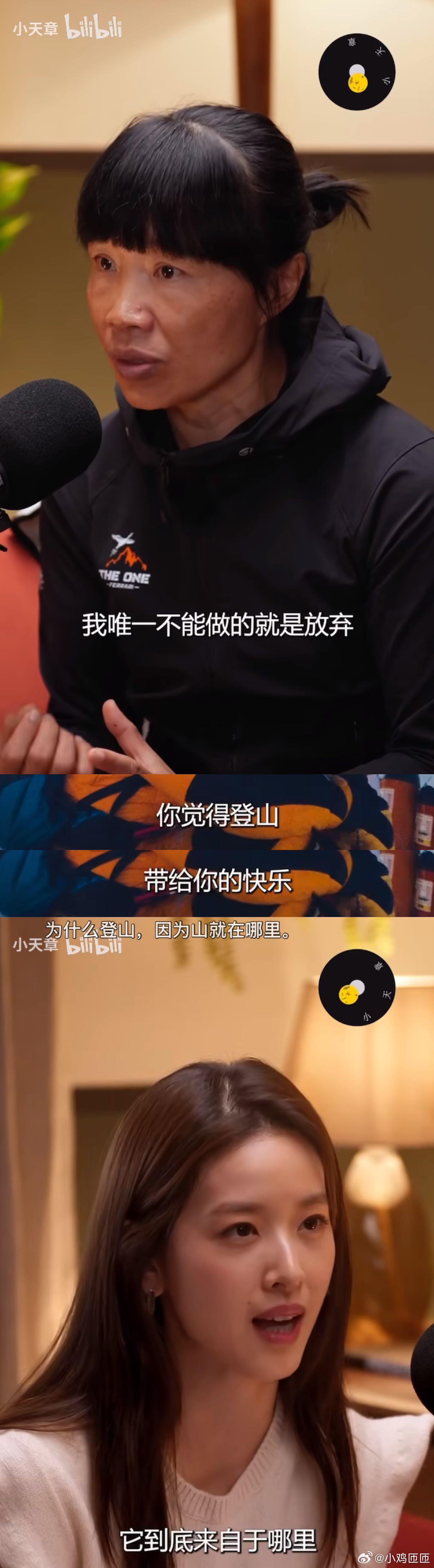 章泽天播客 小天章时隔45天后更新了预告的同时还官宣入驻B站吗?嘉宾是香港登山家曾燕红,是中国速登峰第一人,这个联动倒是让我有些意外了,一会我去B站看看完整版视频