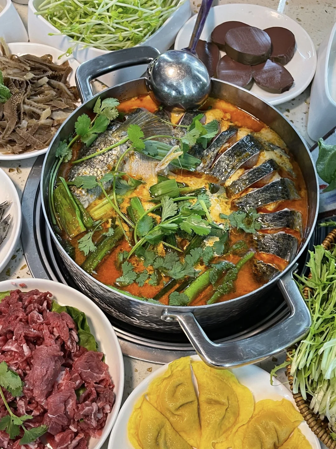 吃完鱼可以涮一点牛肉啊野菜什么的!食材都非常新鲜!他们家还有烙锅什么的!贵州人开的!想吃贵州菜选这家!真的很地道!