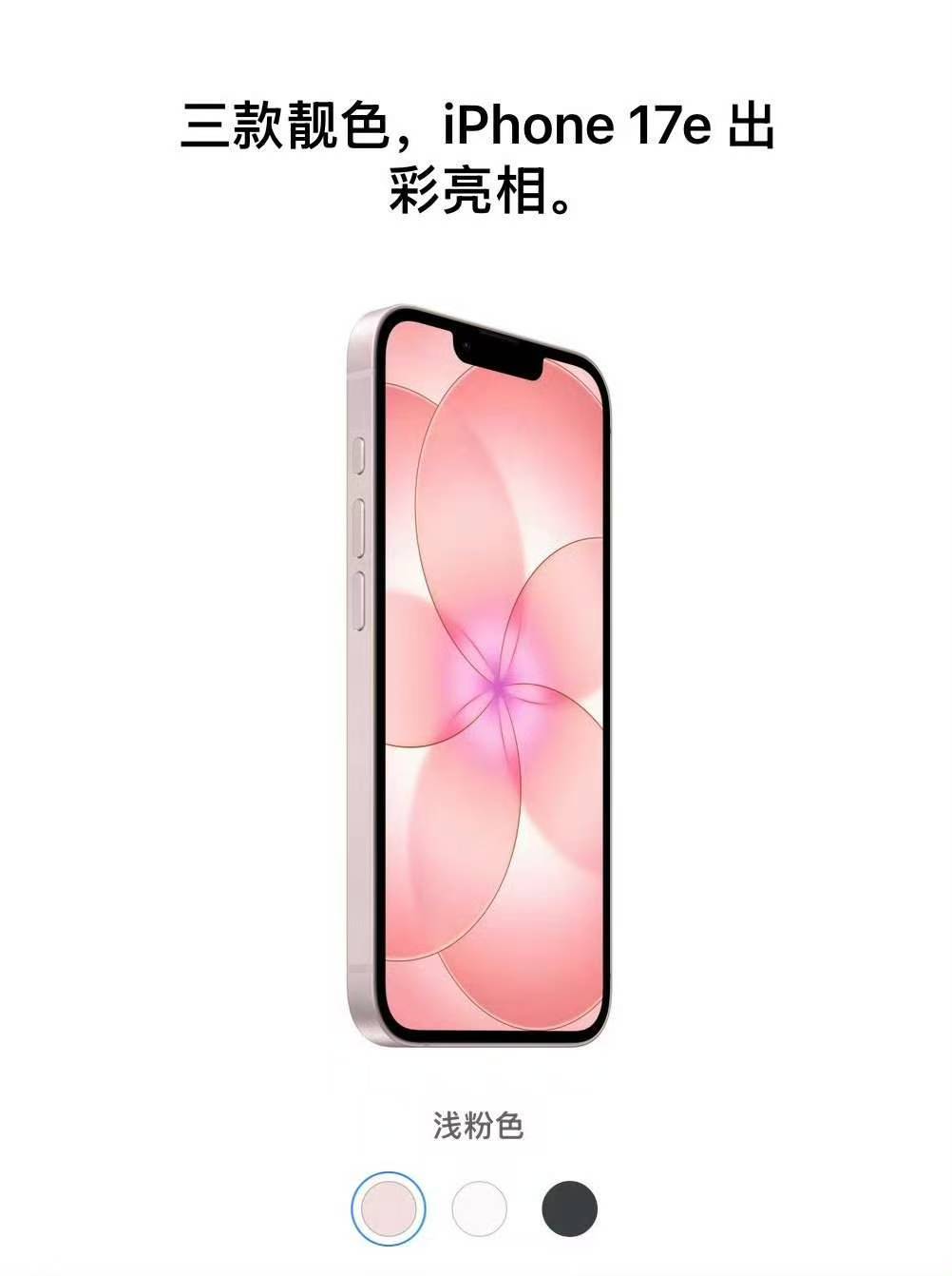 iPhone17e浅粉色 iPhone17e起售价4499元,国补后3999元,是目前苹果最便宜的手机。搭载自研C1X 5G基带,传输速度比上代快2倍,能效提升30%。但用的是远古刘海屏,A19芯片也是4核GPU的“残血版”。说白了,就是用新基带和A19的名头,套上旧模具,精准收割想体验iOS但预算有限的用户。浅粉色颜值在线,但刘海屏和残血芯片,值不值3999,就看你对iOS的信仰了。