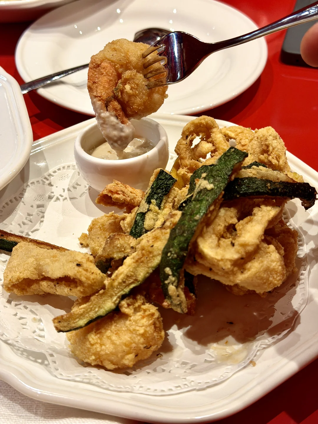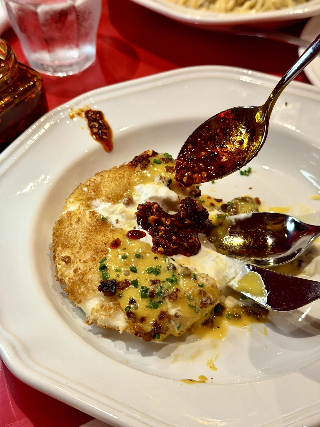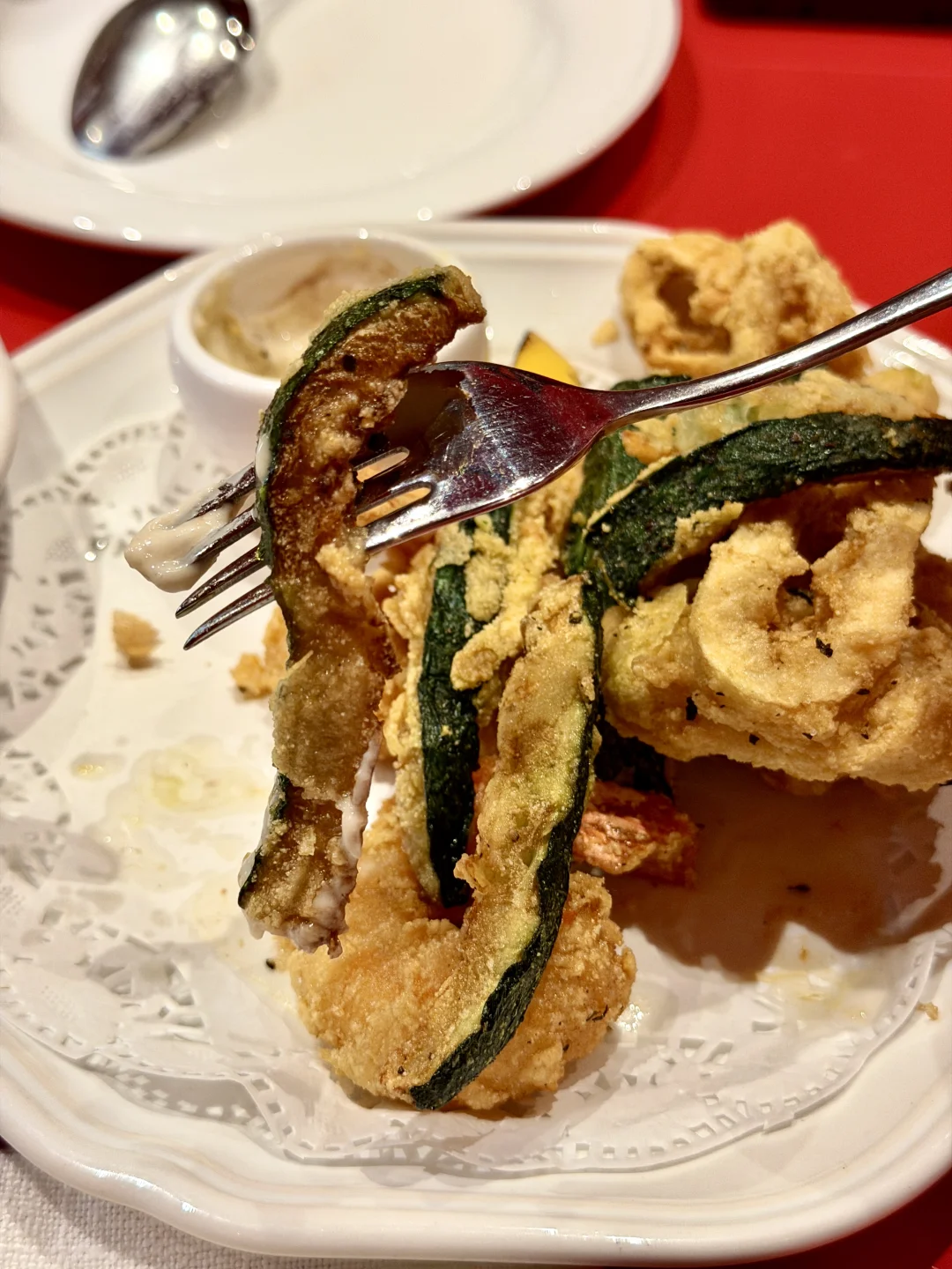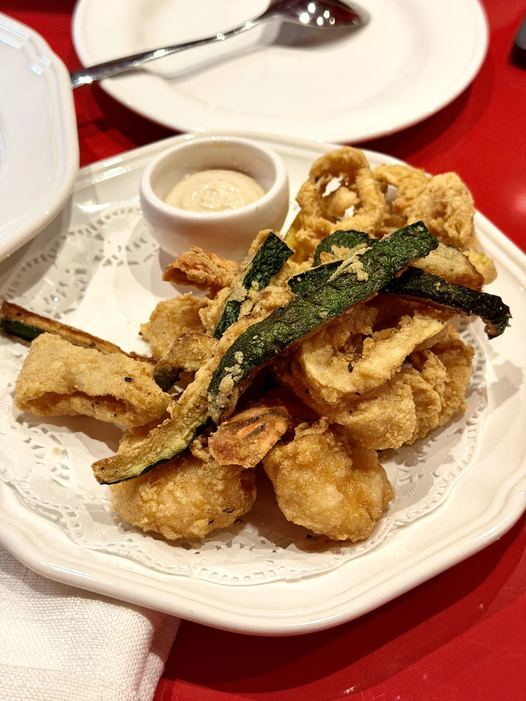 这家在新加坡JW Marriott楼下的意大利菜真的不错,尤其提拉米苏最考验水平,超大分量的提拉米苏最后舔盘了(提拉米苏放了松露丝,有点特别)。 炸鱿鱼和虾还有青瓜的那盘,非常咸香酥脆甚至烫嘴,就得趁热吃。意面我推荐这份黑松露的宽面更有嚼劲也很香浓,另一份细的不如我这个好吃。还有炸布拉塔芝士球,搭配他们的辣椒油吃特别香。他们辣椒油一点都不辣,就是纯香! 一桌子吃的120多新,真的值。因为菜都扛打,没有💣~ 💰指数:人均60新++ 评分:⭐️⭐️⭐️⭐️ 体验:⭐️⭐️⭐️⭐️⭐️ 📍: Medusa Italian Osteria Romana 26 Beach Rd, B1-22 South Beach Avenue, Singapore 189768