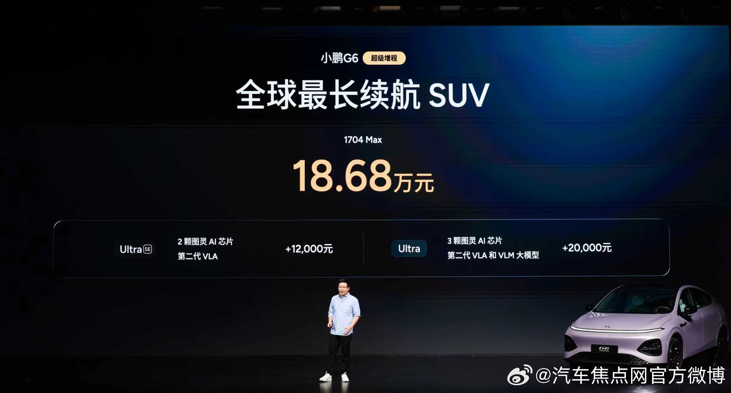 小鹏G6超级增程18.68万起 六项全能一步到位,本次共发布1704 Max,U