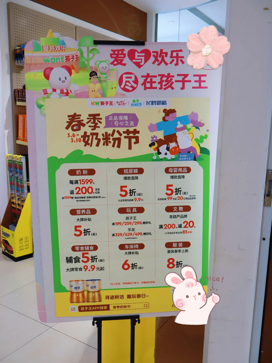 趁着孩子王春季奶粉节有活动,囤了几罐,性价比拉满,正品也有保障。现场还有育儿顾问可以咨询,就算有什么喂养疑问,也能随时问,真的很贴心。😽