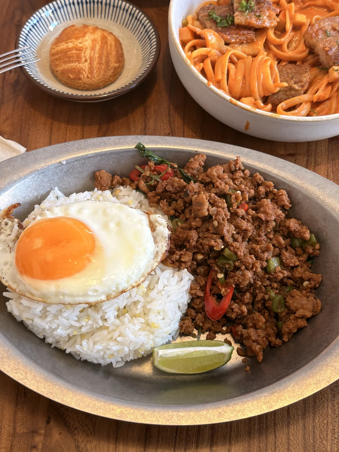炒的碎碎的猪肉沫加上流心的溏心煎蛋,美味之~