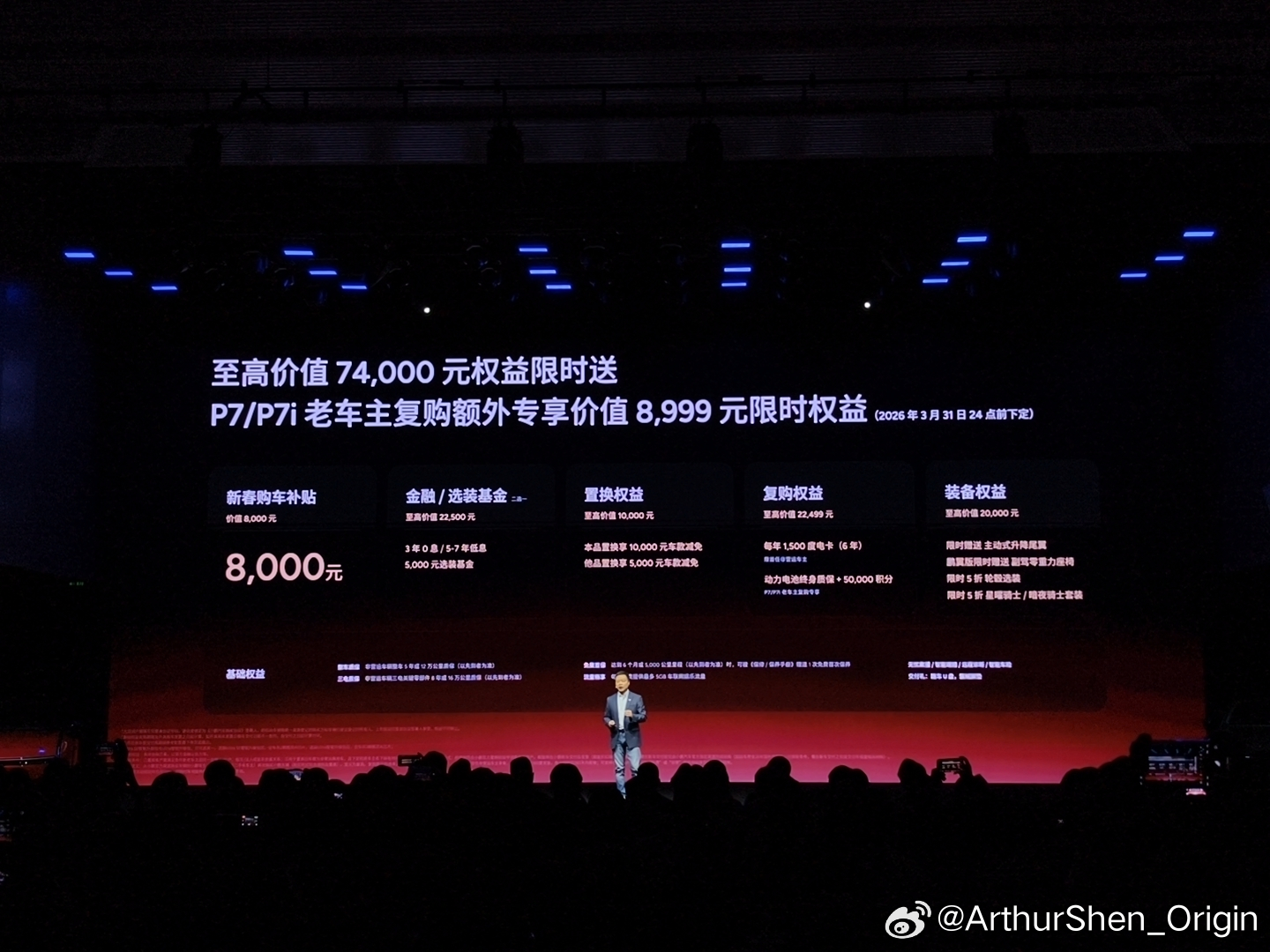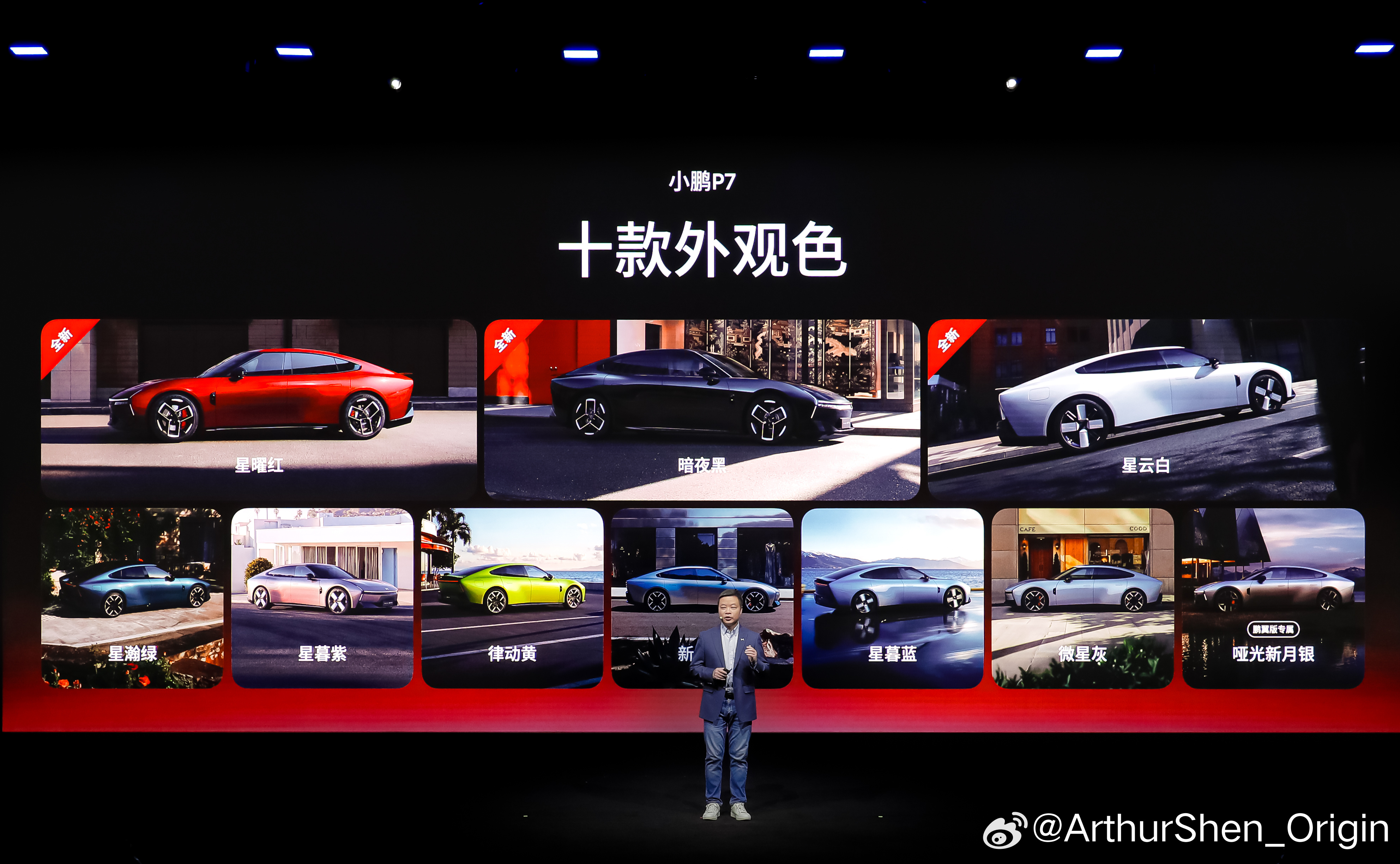能搭载第二代VLA的新款小鹏P7正式上市!新增星曜红、暗夜黑、星云白三款外观色,