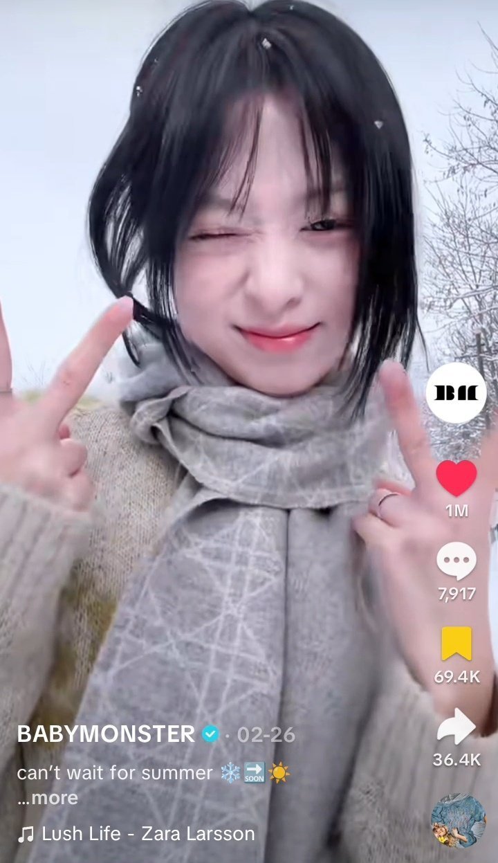 AHYEON 的单人视频在 TikTok 上点赞量突破 100万,播放量达 620万