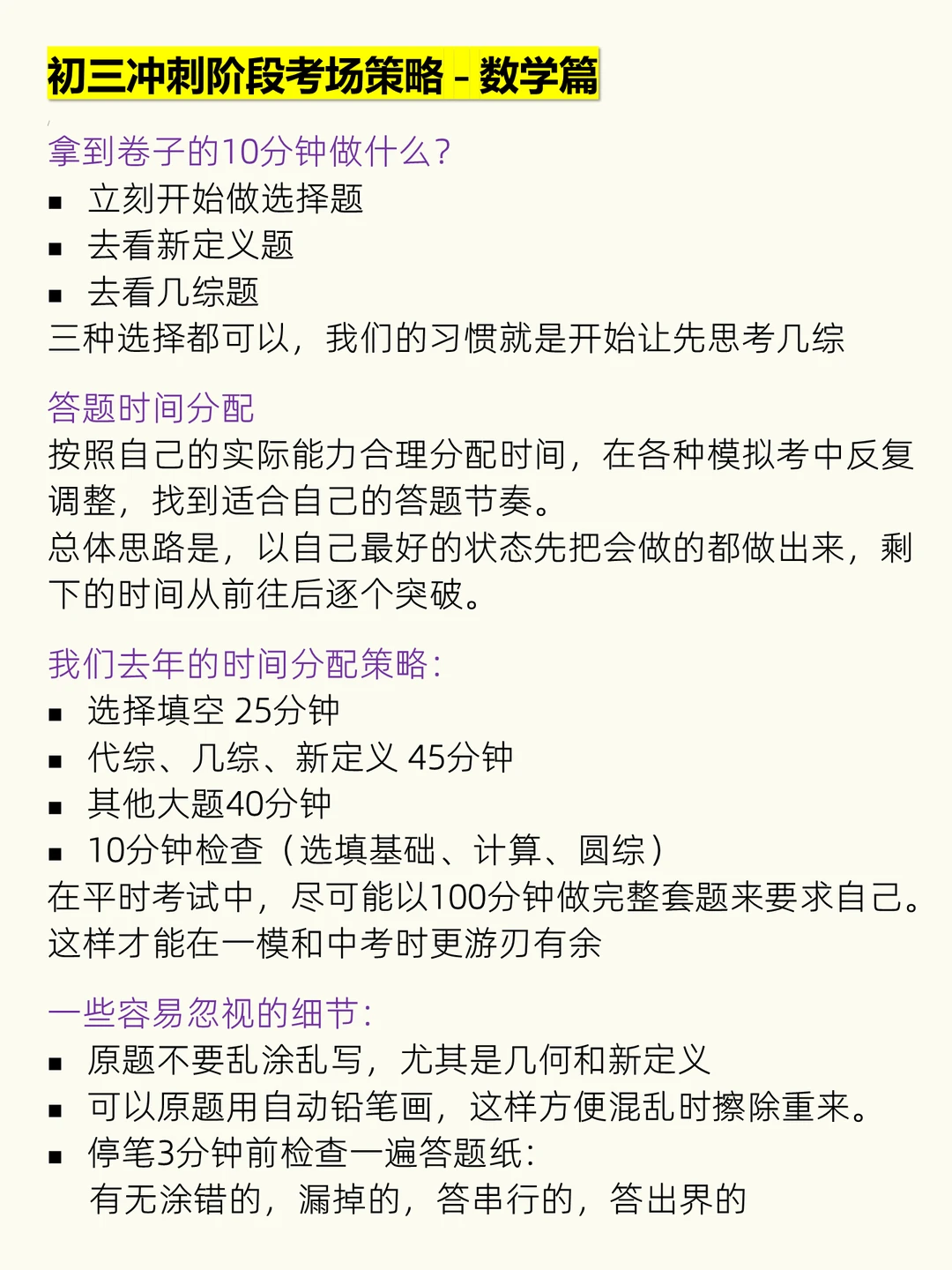 初三进入考试期,除了刷题,考场上的时间分配和细节处理同样能决定最终分数‼️