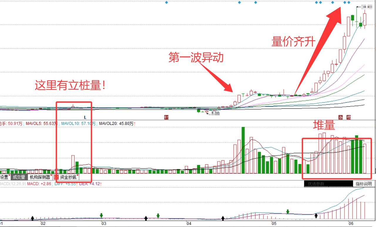 1、立桩量,这是资金的异动信号;