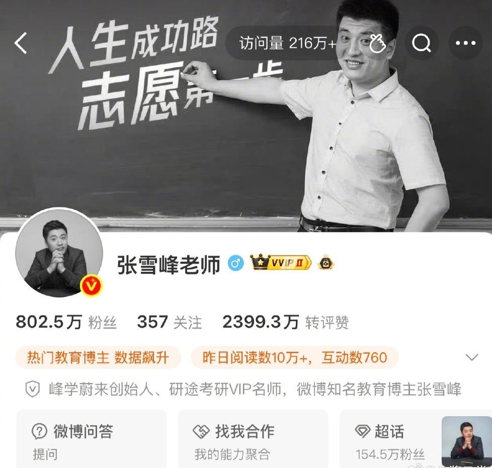 张雪峰各个媒体平台的头像主页都变成黑白了